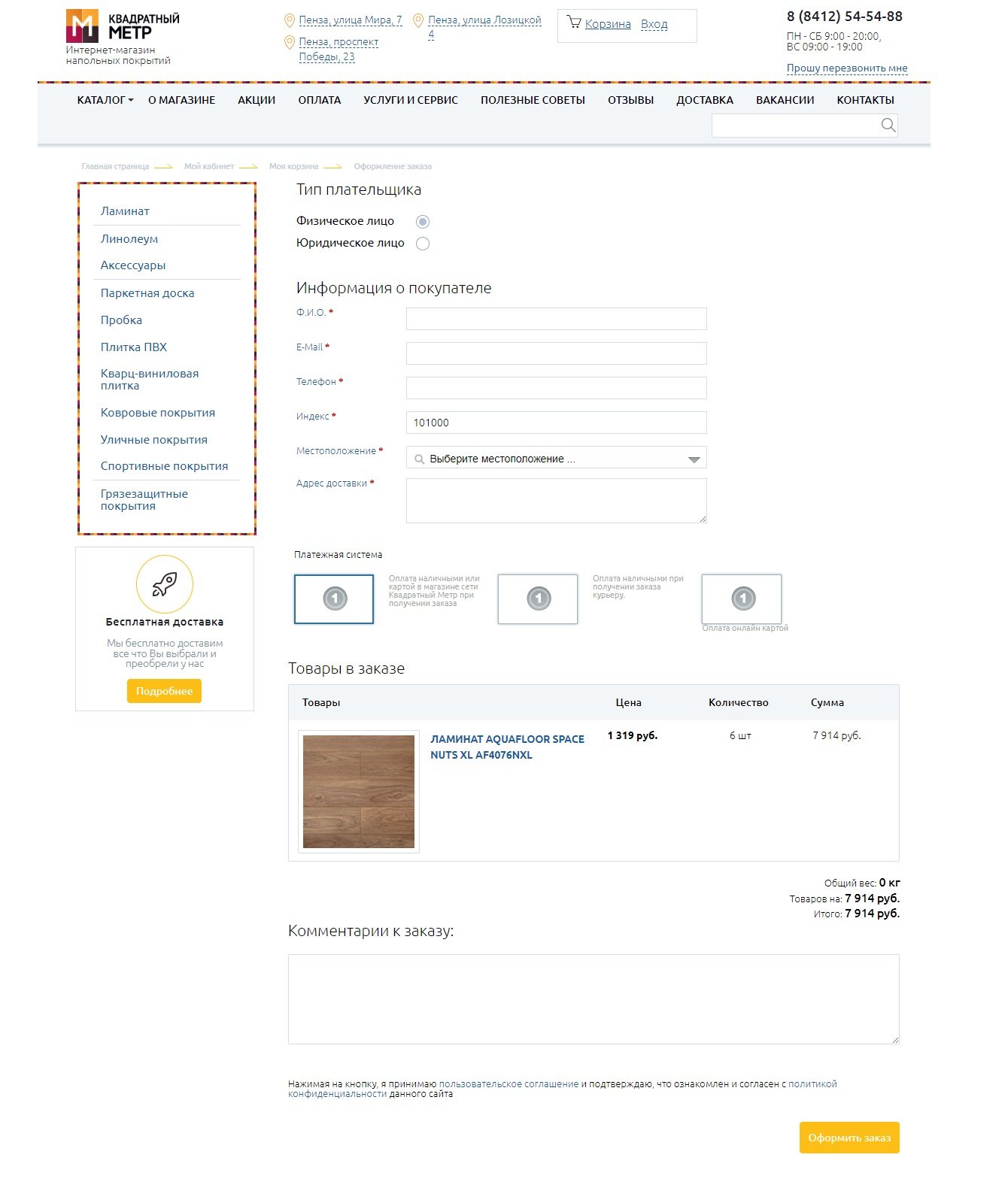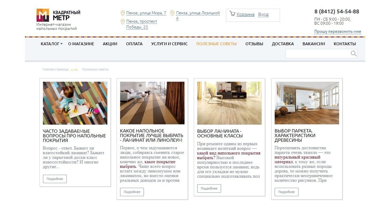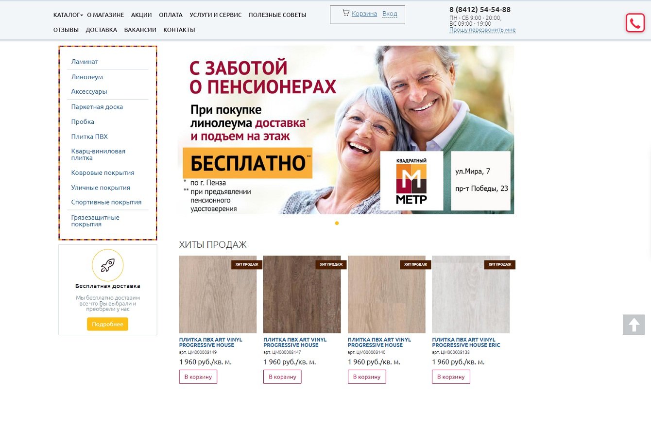 К нам обратился заказчик с задачей разработать сайт для специализированного магазина напольных покрытий. Магазин предлагает своим клиентам огромное количество товаров и услуг. Сайт должен быть простым и понятным для пользователя.