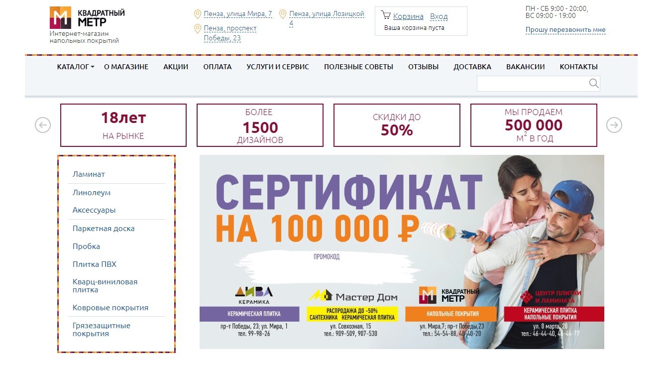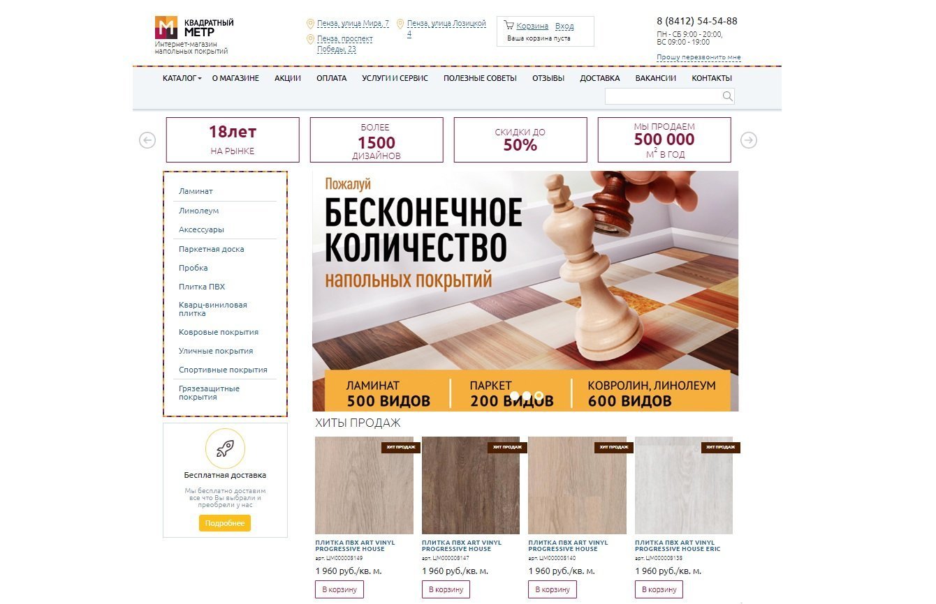 Компания «Квадратный метр» работает на пензенском рынке с 2004 года и сегодня является единственной сетью специализированных магазинов напольных покрытий в городе Пенза.