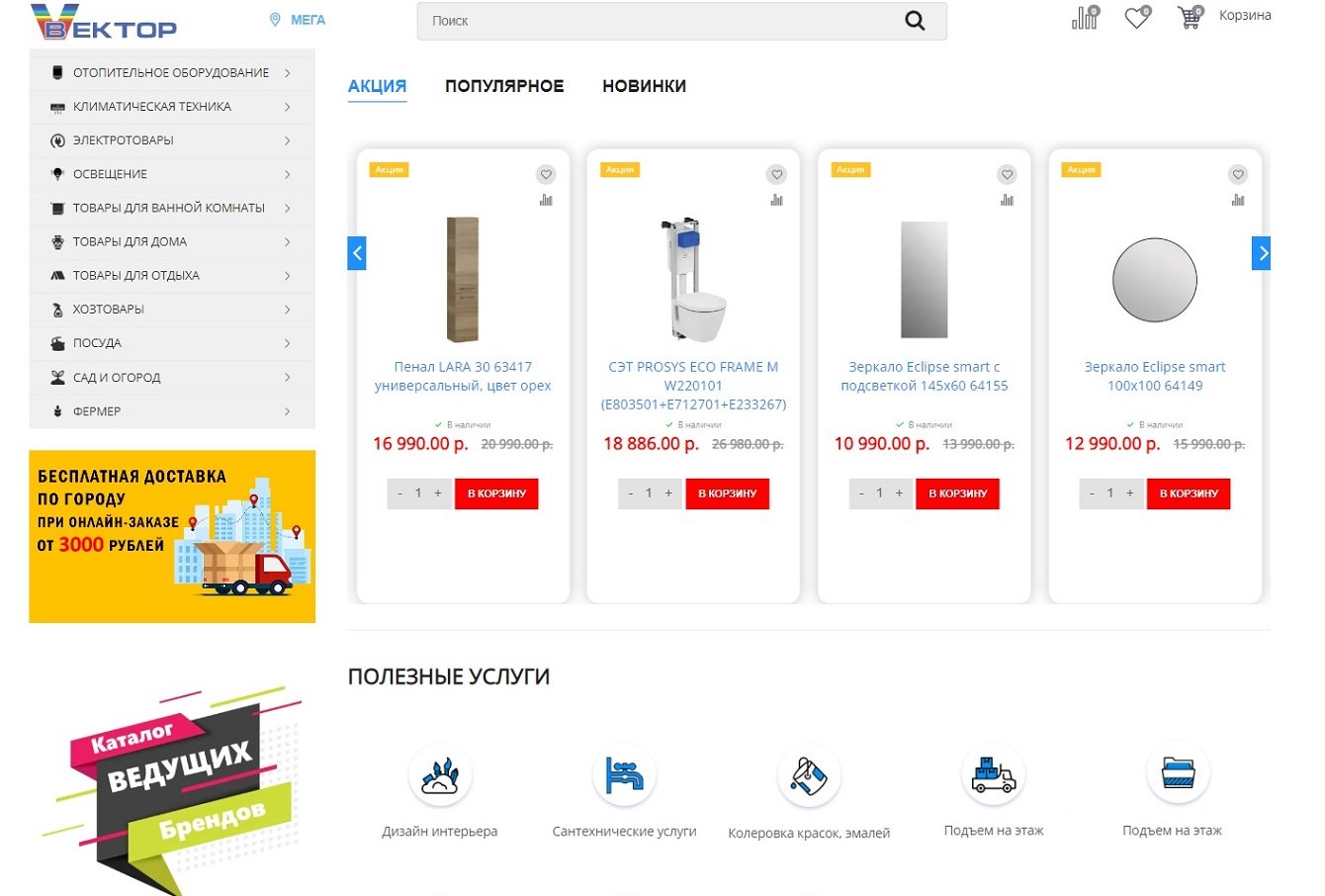 В результате был создан удобный и привлекательный интернет-магазин, который предусматривает быстрый и удобный поиск продукции на основе понятной классификации разделов каталога и фильтрации по основным свойствам этой продукции.