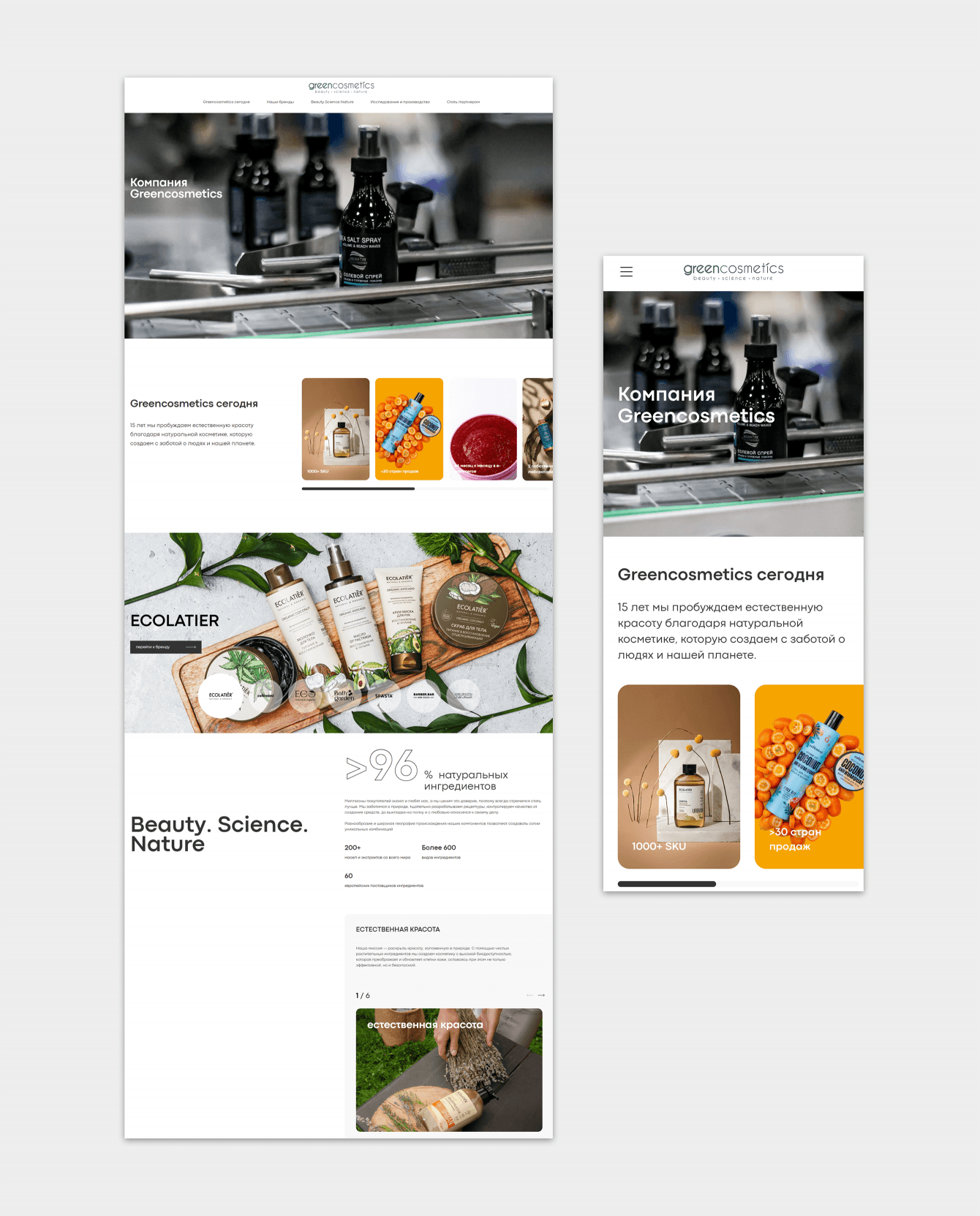 Клиент пришел к нам с задачей сделать обновленный визуально и технически современный сайт, интегрированный с 1С, с удобной административной панелью и возможностью самостоятельно редактировать контент. Сайт должен стать инструментом для дальнейшего развития в e-Commerce и быть удобным как для покупателей, так и для работы с ним команды Greencosmetics.