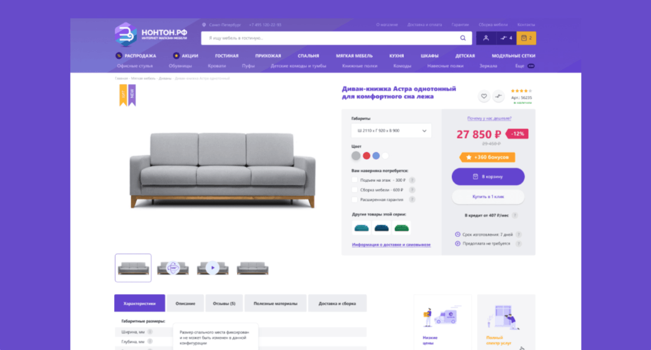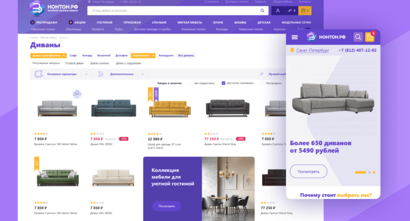 На основании предпроектного анализа и данных компании «НОНТОН» мы разработали прототип и дизайн сайта. В интернет-магазине теперь доступны:
