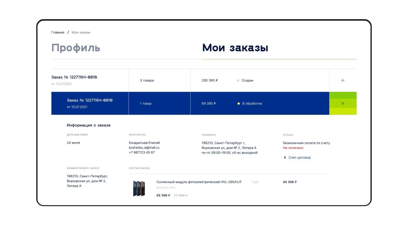 2. Личный кабинет собирает на одном экране всю ключевую информацию.