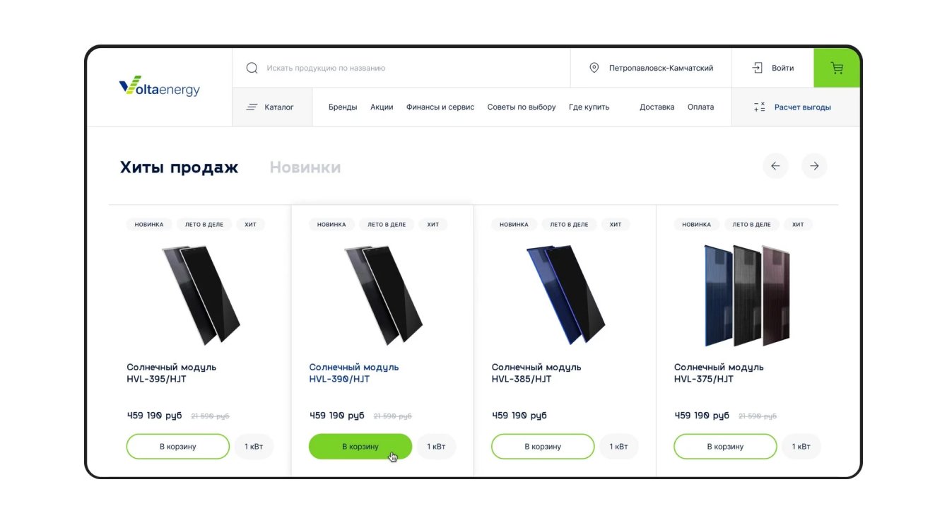 1. Карточки товара с удобными фильтрами позволяют легко оформить заказ.