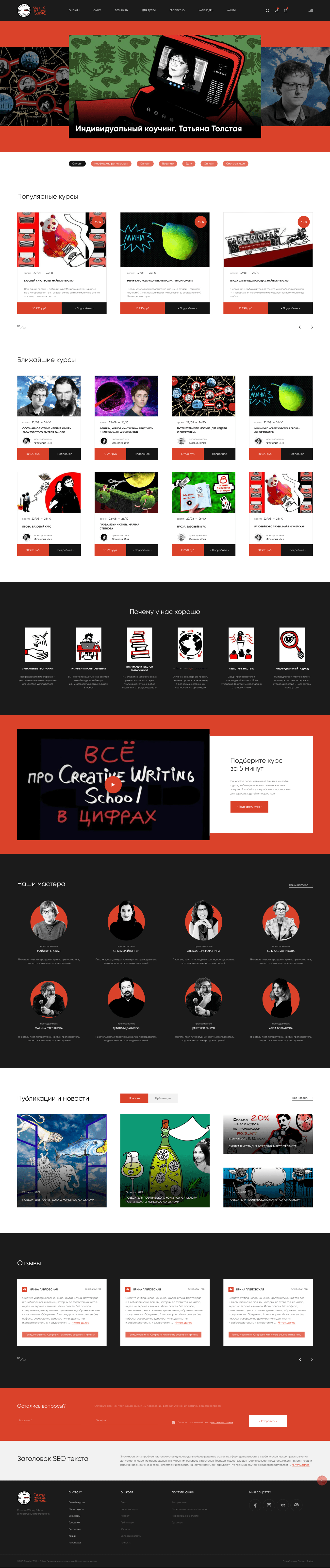 Клиент: литературная школа Creative Writing School, которая проводит обучение творческому письму, писательскому делу, русской словесности в очном и онлайн-форматах.
