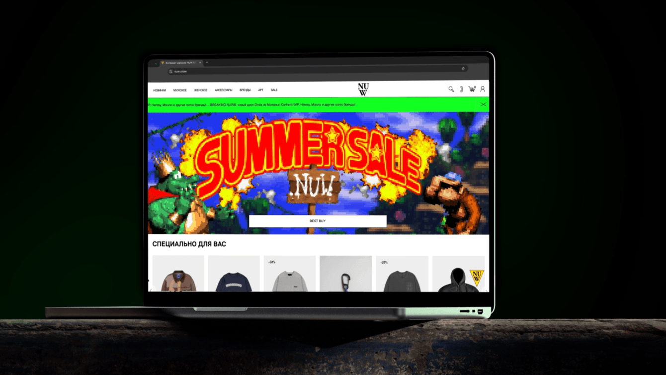 К X году своего развития магазину стало не хватать функционала облачной учетной системы «Мой Склад». NUW.STORE обратился к нам за помощью в обновлении сайта и подборе более подходящей системы учета (ей стала 1С: УНФ) и полной миграции на неё - это касалось как перевода на новые рельсы внутренних процессов магазина, так и перенастройки интеграции с интернет-магазином.