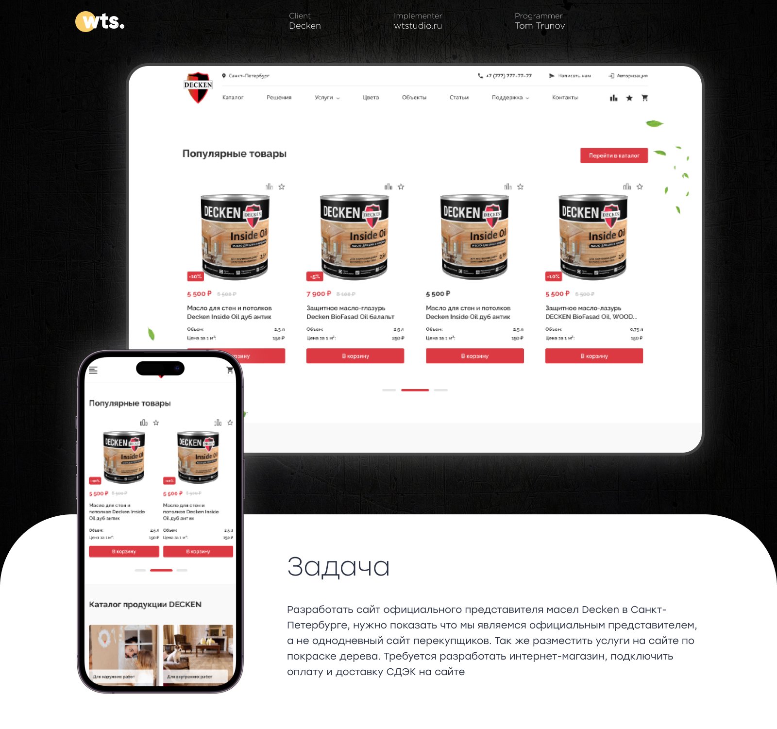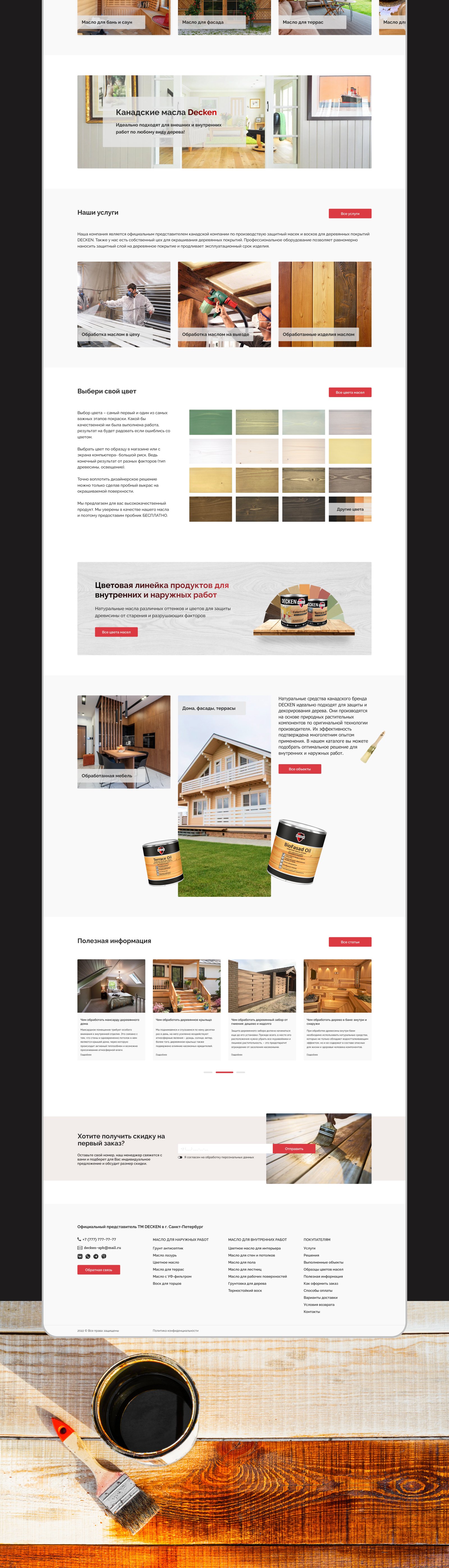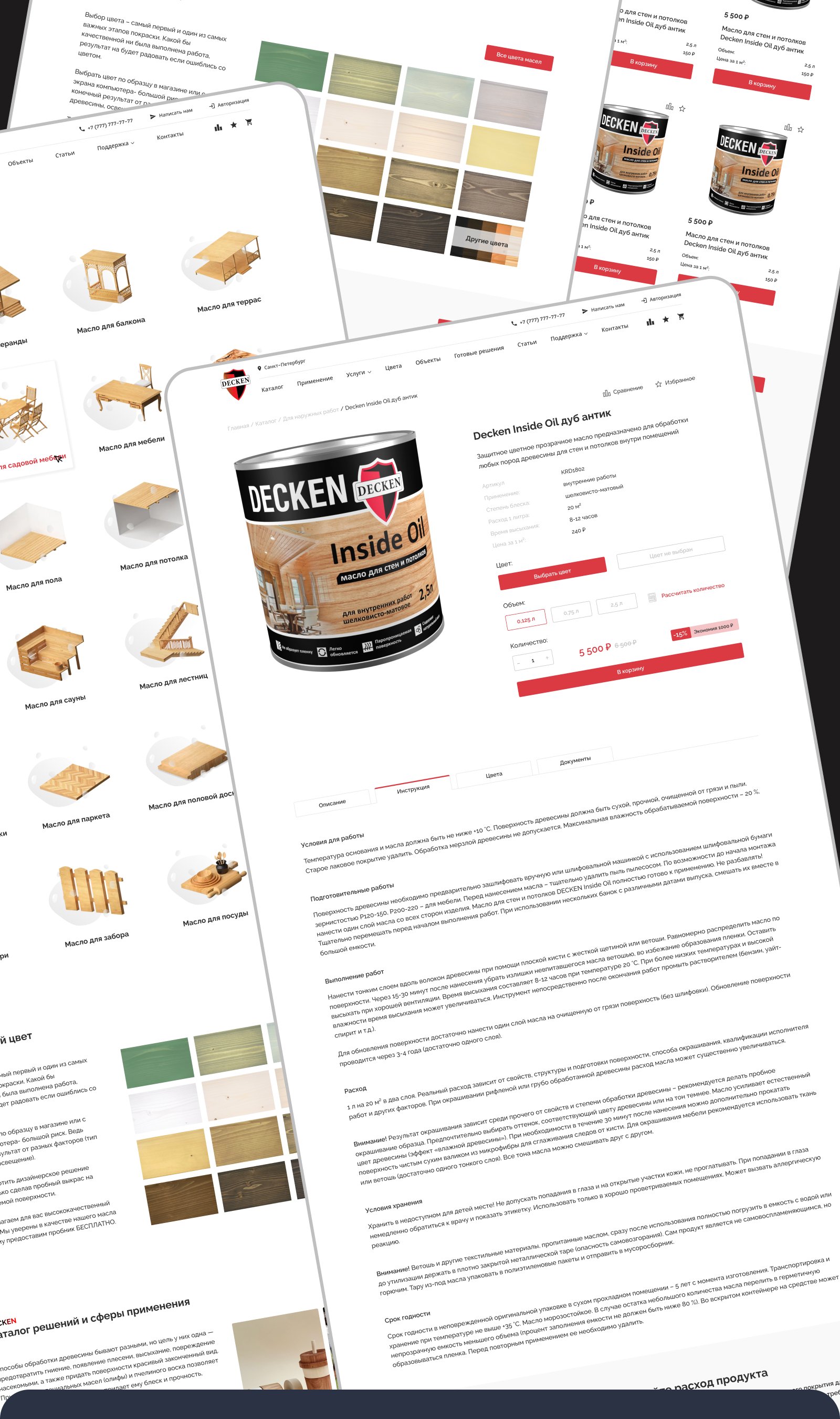 Разработать сайт официального представителя масел Decken в Санкт-Петербурге, нужно показать что мы являемся официальным представителем, а не однодневный сайт перекупщиков. Так же разместить услуги на сайте по покраске дерева. Требуется разработать интернет-магазин, подключить оплату и доставку СДЭК на сайте