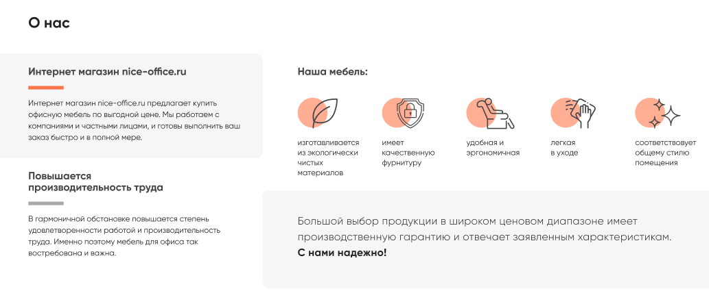 - Формулировка оффера: Определили ключевые сообщения: "Мебель для работы со смыслом", "Комплексное оснащение офиса под ключ", "Проверенное качество и эргономика".