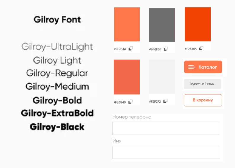 Цветовая палитра: В основе — нейтральная гамма (оттенки серого, белый). Акцентный цвет (например, глубокий синий или зеленый) был использован для ключевых действий: кнопок "В корзину", "Оформить заказ", цен. Этот цвет ассоциируется с надежностью, стабильностью и доверием.