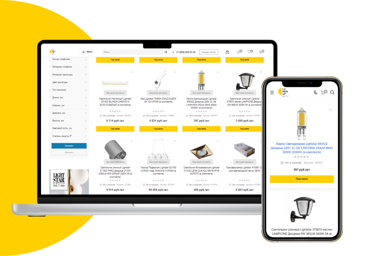 Разработать и запустить интернет магазин для продажи осветительной техники.