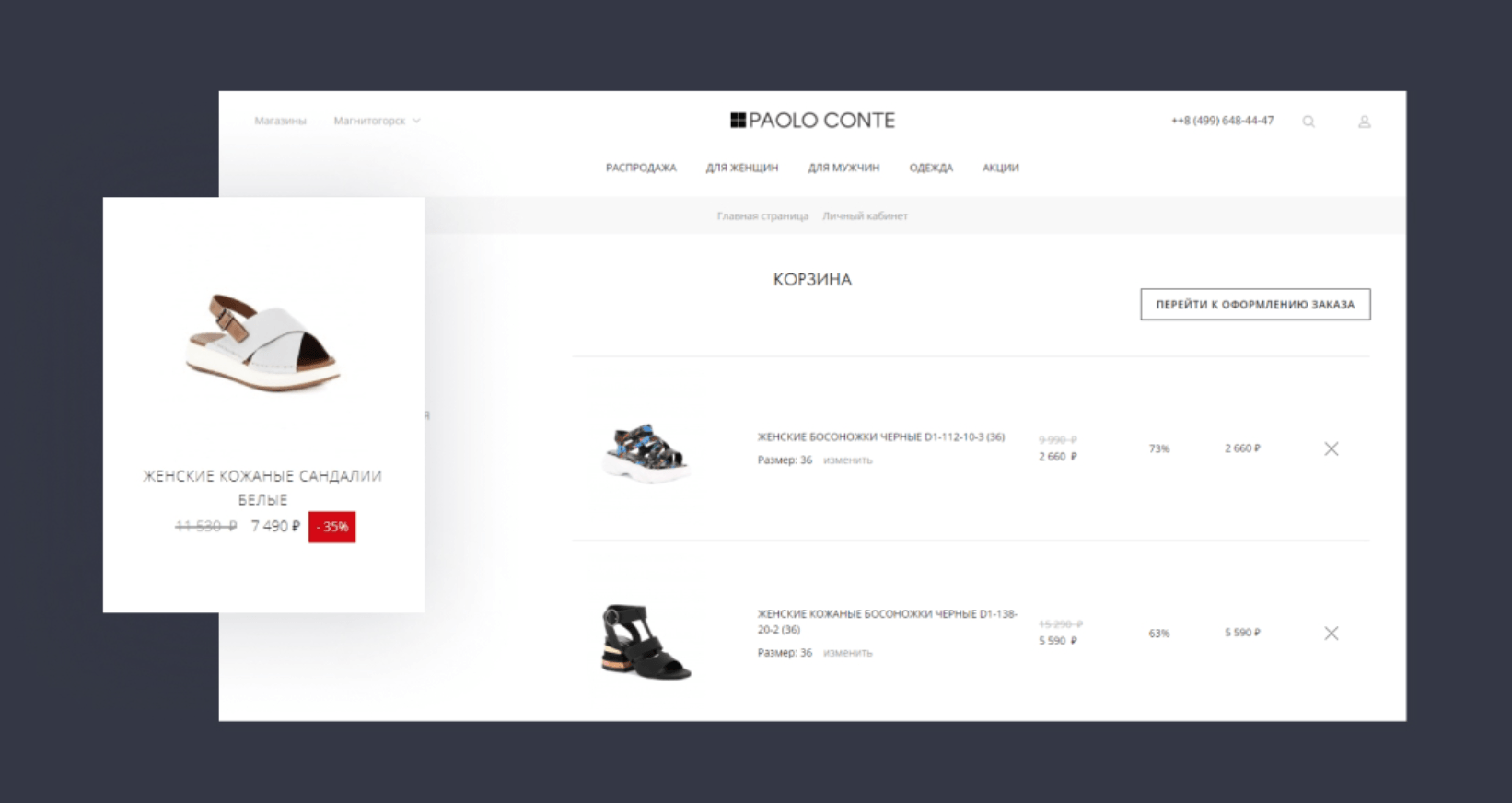 Мы использовали инструменты 1С-Битрикс, и, адаптировав их под бизнес-процессы Paolo Conte, реализовали маркетинговые ходы: скидки за привлечение друзей, функцию «узнать о снижении цены», лист ожиданий, список желаний – в нем «хранятся» обувь и аксессуары, которые покупатель отметил значком «сердечко». Раздел сделали открытым: для формирования списка желанных покупок не нужно регистрироваться, что удобно для покупателей, не принявших окончательного решения. При этом, если покупатель авторизуется или зарегистрируется, список желаний автоматически попадет в его личный кабинет