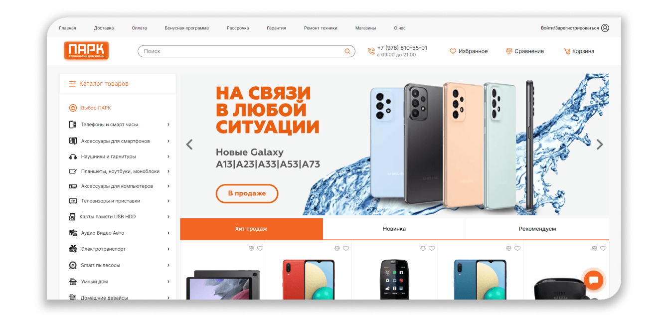 Сайт «ПАРК Мобайл» существует с 2001 года. За это время в программе 1С накопилась история сотен тысяч покупок. На их основе специалисты 1С научились формировать персонализированные предложения каждому клиенту — участнику программы лояльности.