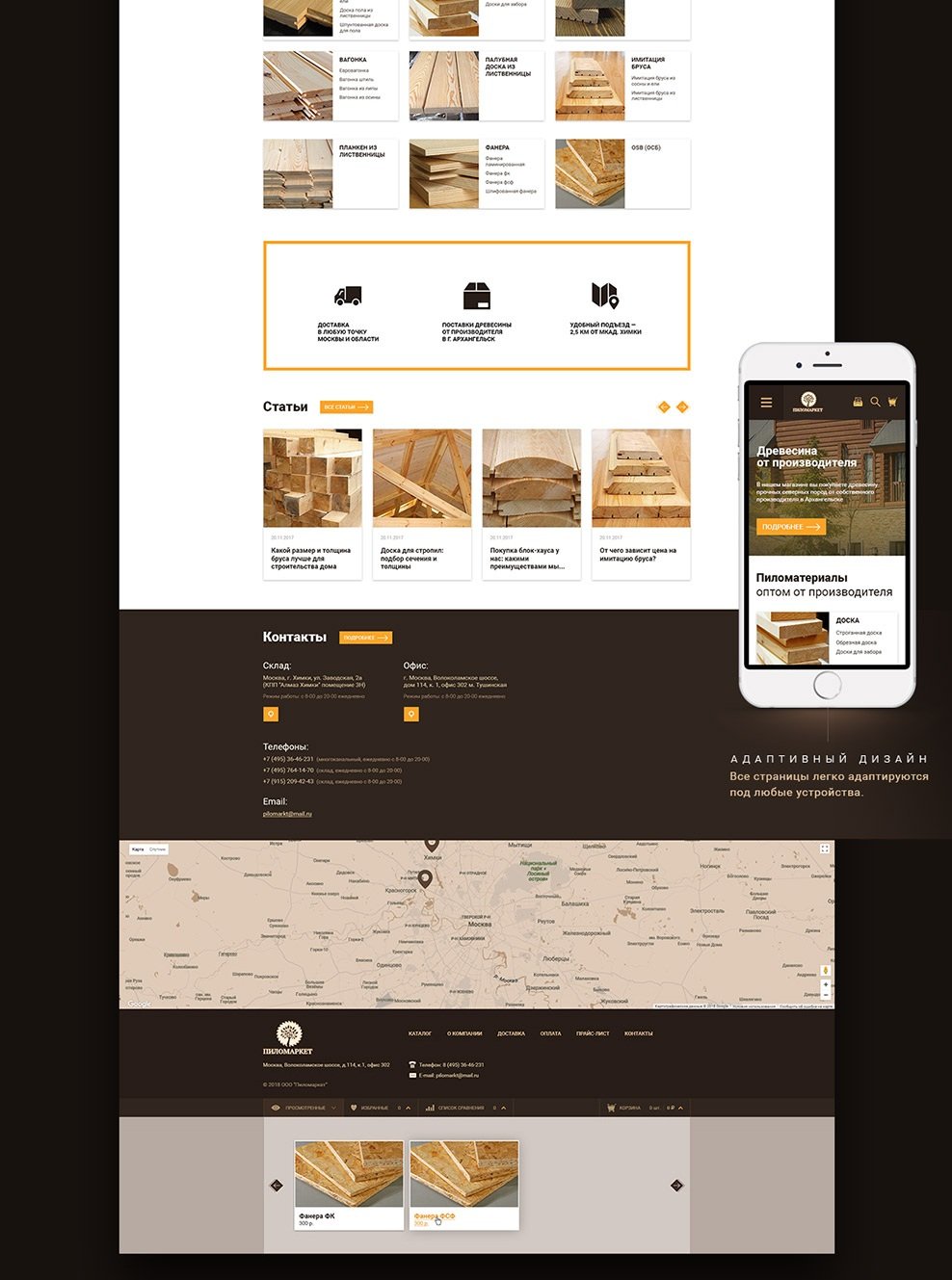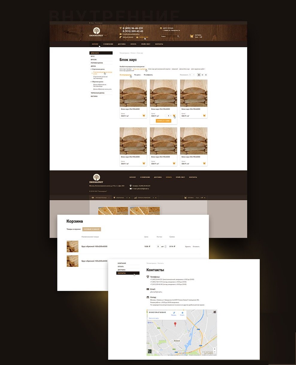 Задача: обновить внешний облик существующего сайта, сохранив при этом весь функционал. В качестве темы дизайна была выбрана основная деятельность компании: весь сайт выполнен в тёплых тонах с использованием текстуры дерева.