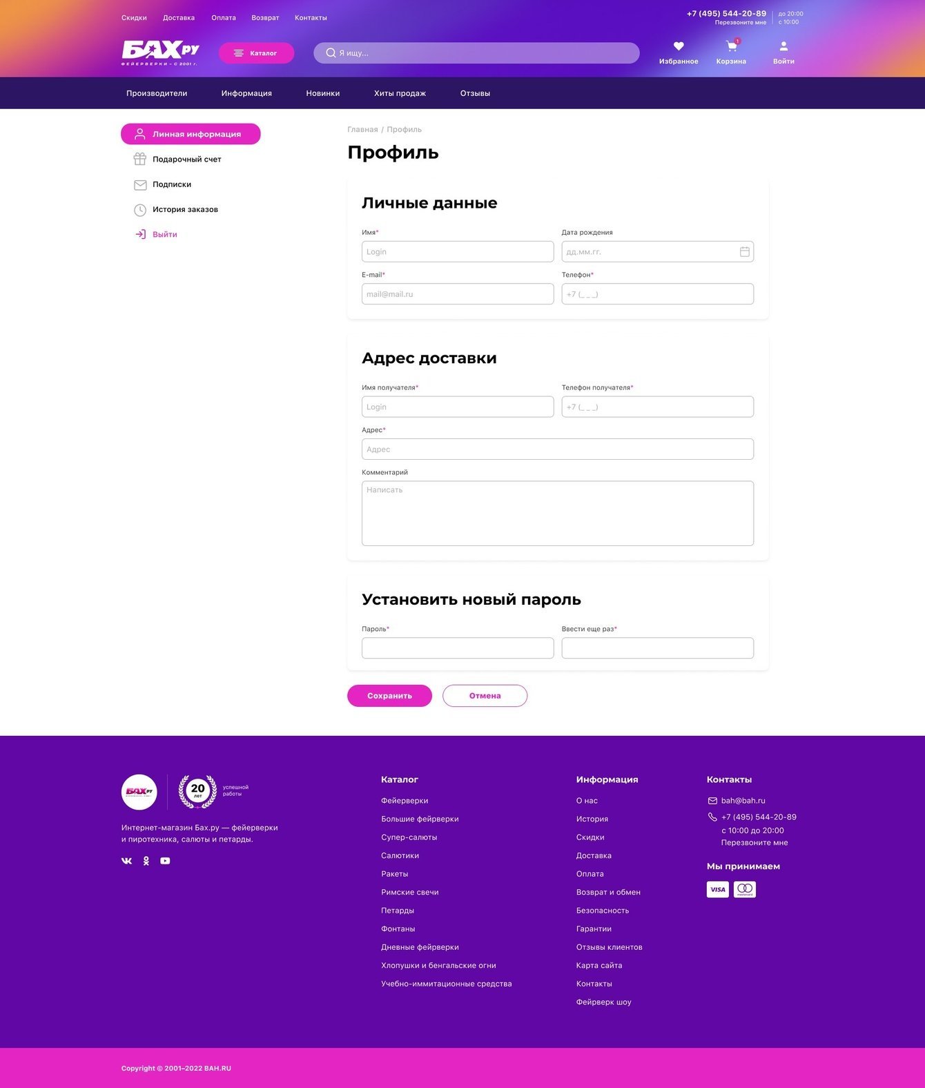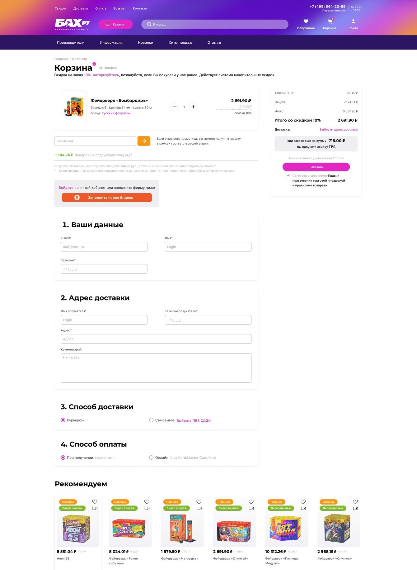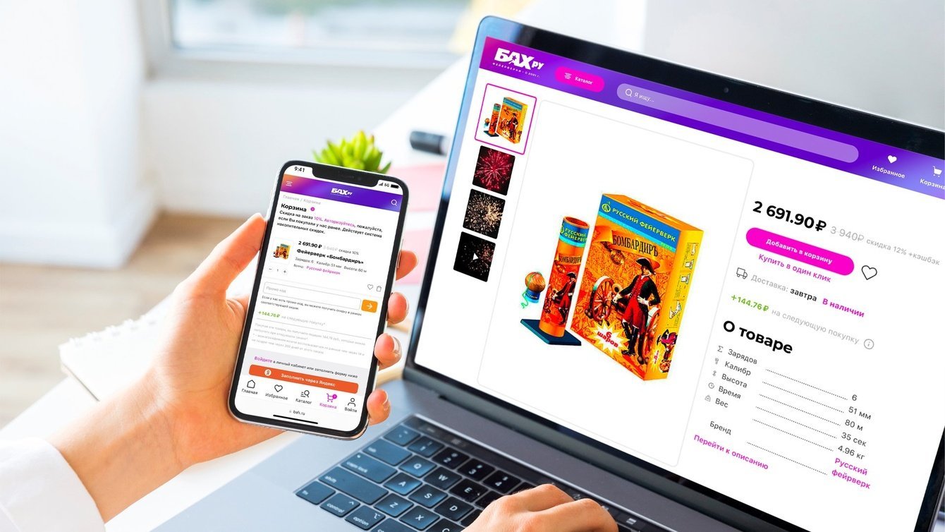 Интернет-магазин праздничной пиротехники Bah.ru был создан более 20 лет назад на самописной CMS. За это время прежний дизайн сайта сильно устарел и нуждался в радикальном обновлении.