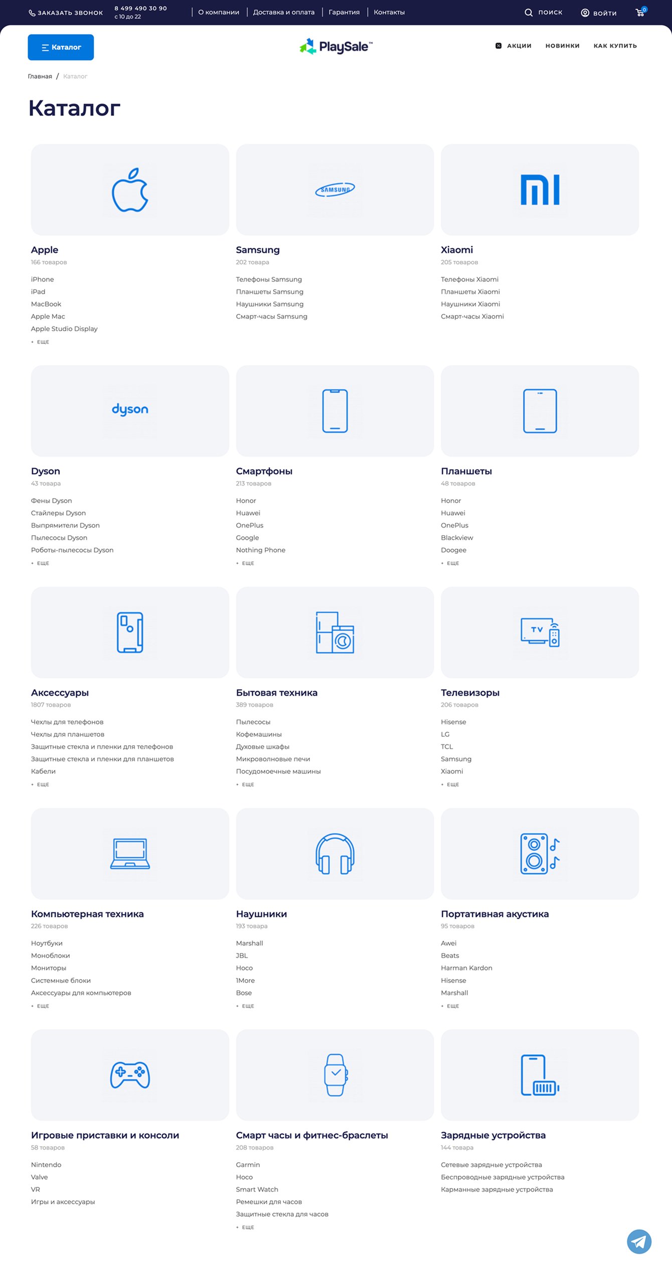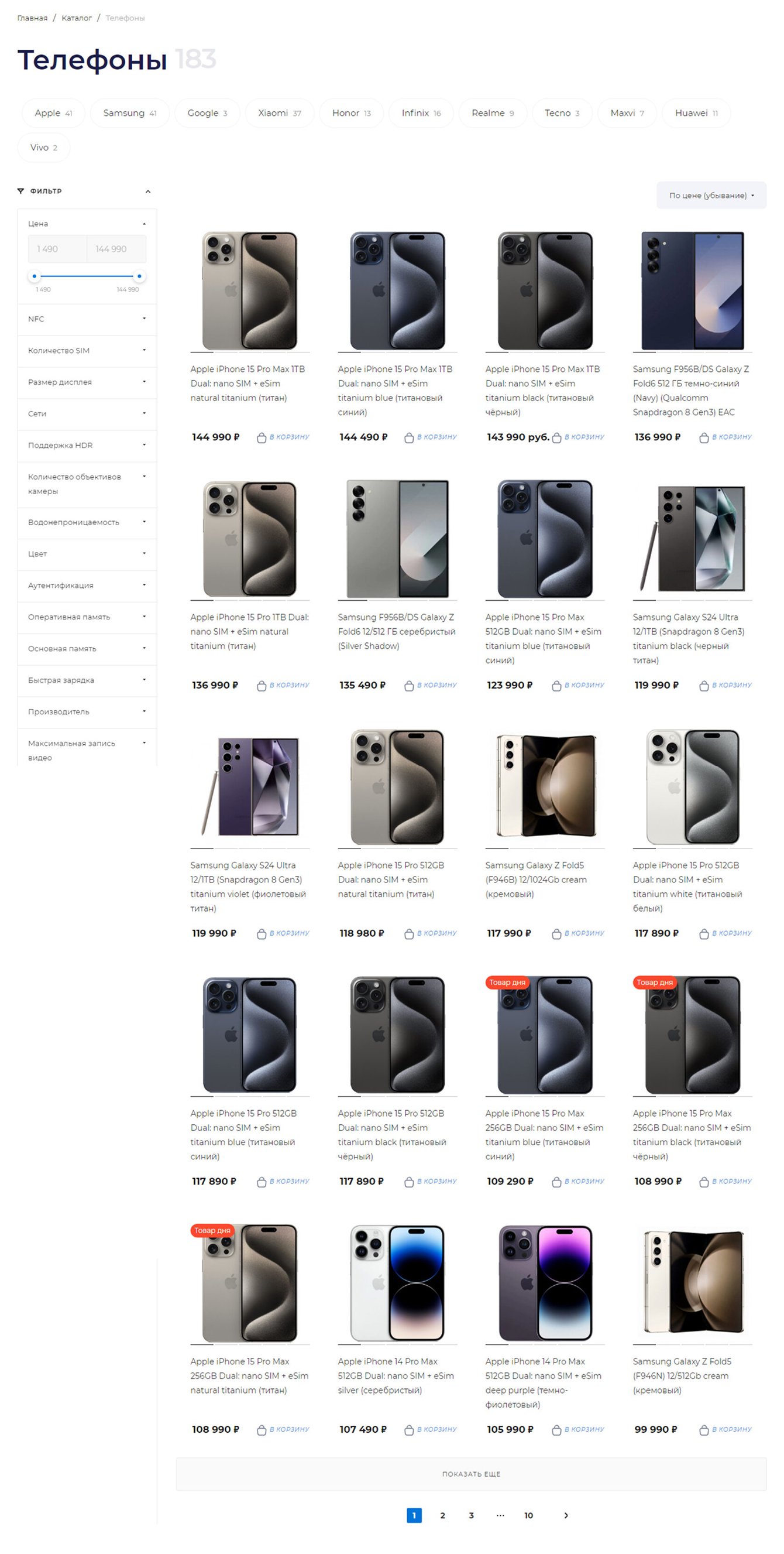 Такой структурированный подход облегчает ориентацию в ассортименте и помогает быстрее перейти к нужному сегменту каталога.