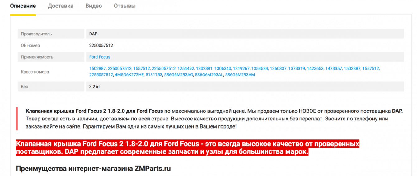 Тексты были максимально обезличены, чтобы не вдаваться в специфику детали для каждой марки и модели автомобиля.