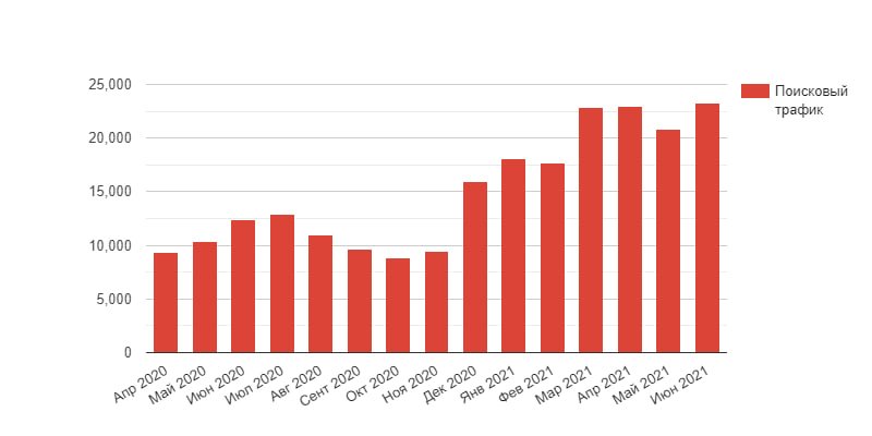 С момента начала работ поисковый трафик вырос на 248% с 8 836 переходов в месяц до 21 924 переходов в месяц