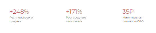 Благодаря работе Чудаева Алексея, Галкина Григория, Мухаммада Жагипарова, Кристине Меркуловой и другим сотрудникам, мы выросли в несколько раз. У нас появилась корректная сквозная аналитика от «Calltouch» и «Электронная коммерция» в Яндекс. Метрике. Суммарная стоимость получения лида из SEO составила менее 80 рублей, конверсия с сайта увеличилась до 6-8%.