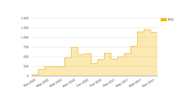 ROI (return on investment) — коэффициент, отражающий возврат вложенных инвестиций в рекламу. В нашем случае оценка производился исключительно в рамках работ и затрат на поисковое продвижение. В него включены все затраты на SEO, оборотка и маржа. Значение должно быть выше 100%, в нашем случае ROI более 1000%