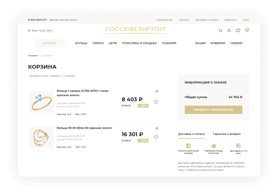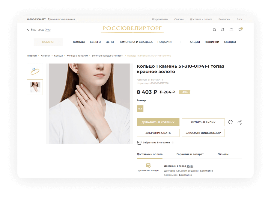 Мы проработали детальное описание каждого товара. Каждое ювелирное изделие имеет подробное описание, фотографии с разных ракурсов, указание используемых материалов, характеристики камней и другие важные сведения, что пользователю помогает в выборе подходящего изделия.