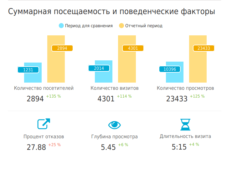 - За 5 месяцев работы трафик увеличился с 235 до 1967 посетителей в месяц (в 8 раз).