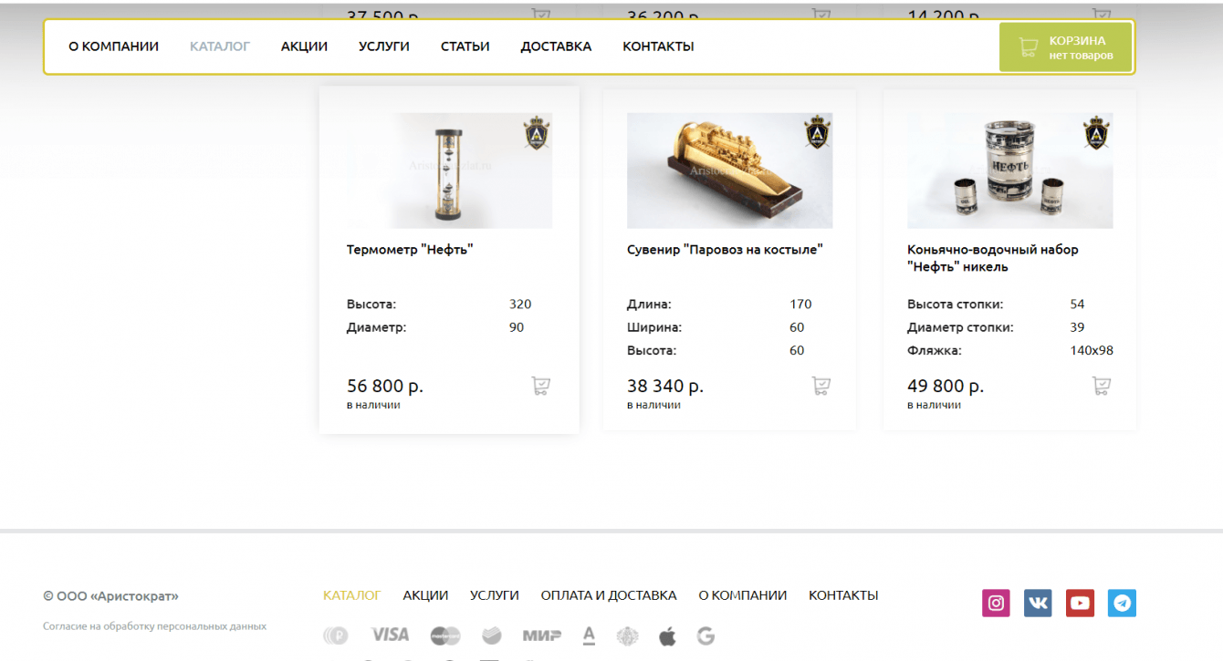Реализовали функционал каталога и корзины с продвинутыми фильтрами для выбора подарков, блог, фильтры. Наполнение контентом.