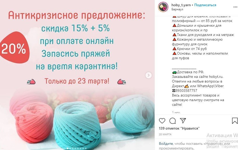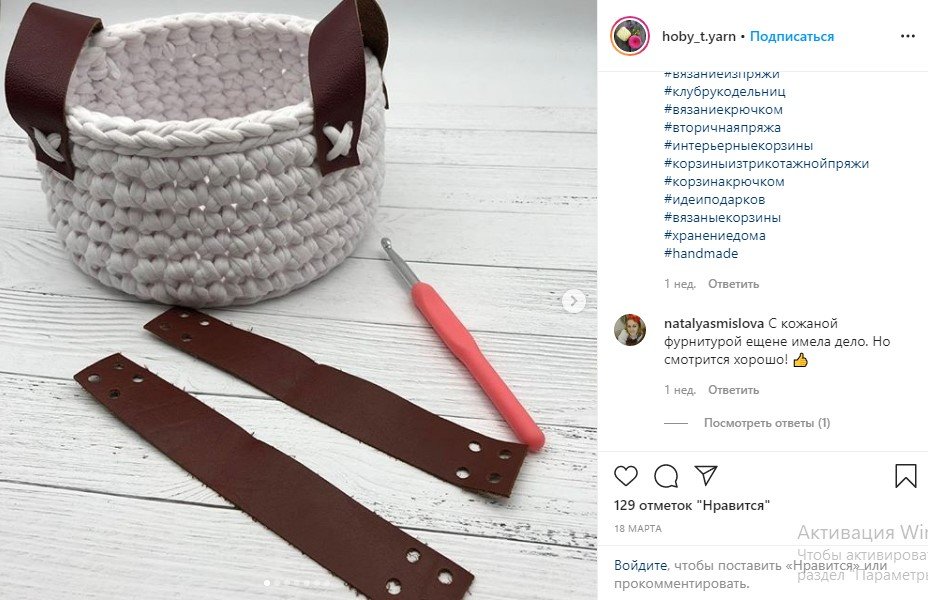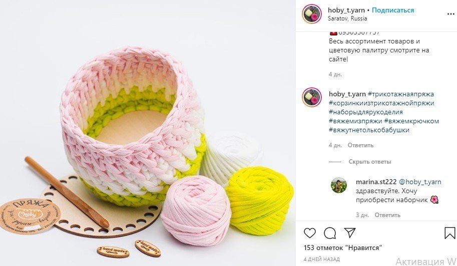 Клиент осознанно стал создавать изделия из своих товаров, чтобы на примере показать, как выглядит пряжа и шнур в деле. Это, во-первых, избавляет от жалоб владельцев оригинальных фото (раньше идеи для аккаунта брались из свободного доступа в интернете), а во-вторых во всей красе показывает именно товары клиенты – в том же цвете, толщине.