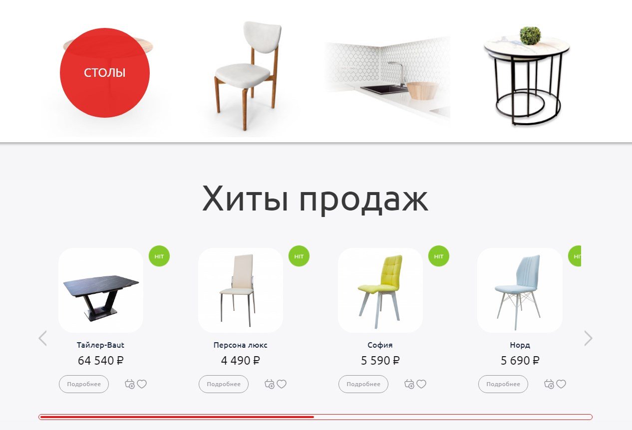 Тип сайта — интернет-магазин по продаже обеденных групп, собственного производства. Подключена онлайн-оплата.
