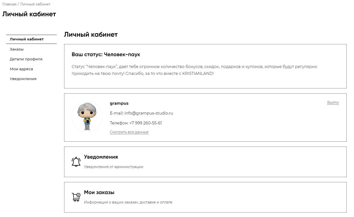 Мы продумали все: трекер заказа, история, вишлист, игровая механика для стимулирования продаж. Например, можно стать человеком-пауком и получать бонусы.