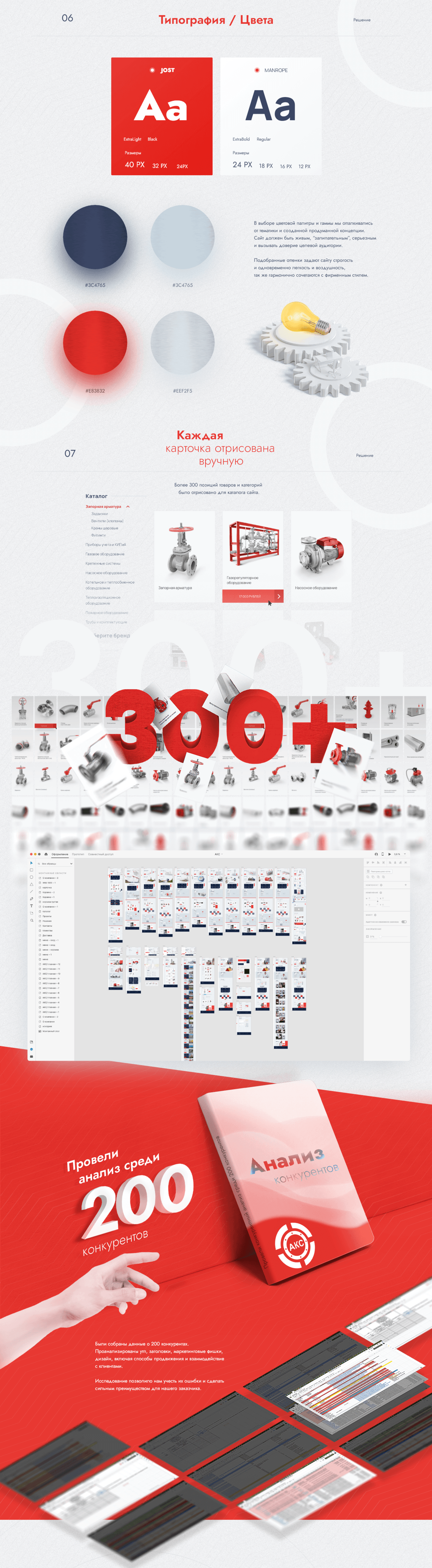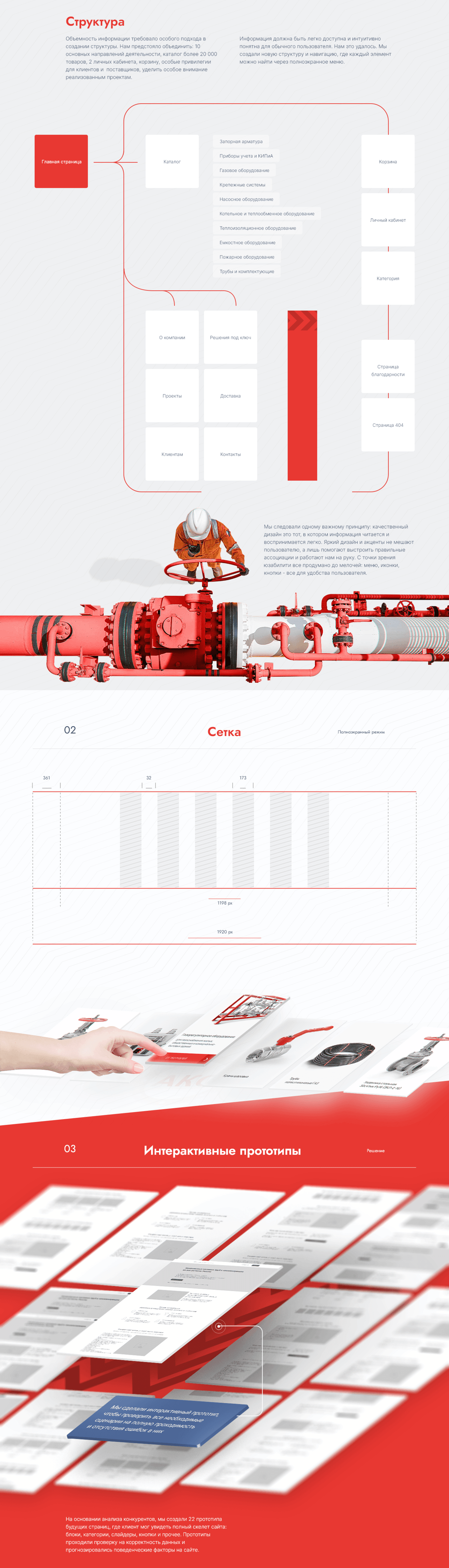 В рамках данного проекта мы решили объединить 10 основных направлений деятельности, каталог более 20 000 товаров, 2 личных кабинета, корзину, особые привилегии для клиентов и поставщиков, уделить особое внимание реализованным проектам. Информация должна быть легко доступна и интуитивно понятна для обычного пользователя. Мы решили создать новую структуру и навигацию, где каждый элемент можно найти через полноэкранное меню.
