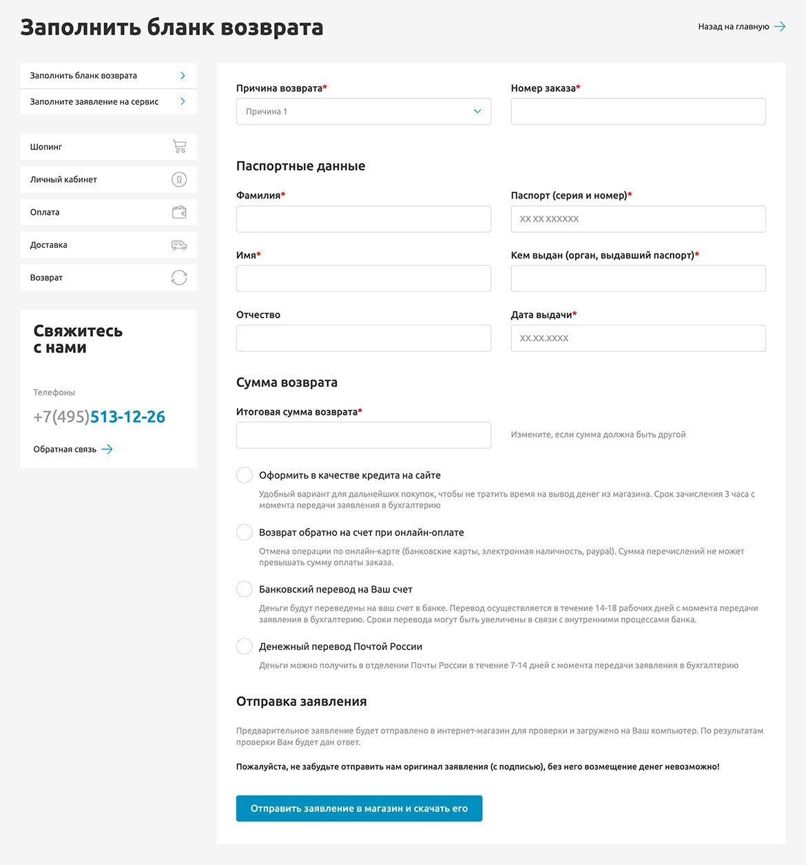 После заполнения бланка возврата в личном кабинете пользователя автоматически генерируется PDF-документ, который отправляется по электронной почте в отдел контроля качества.