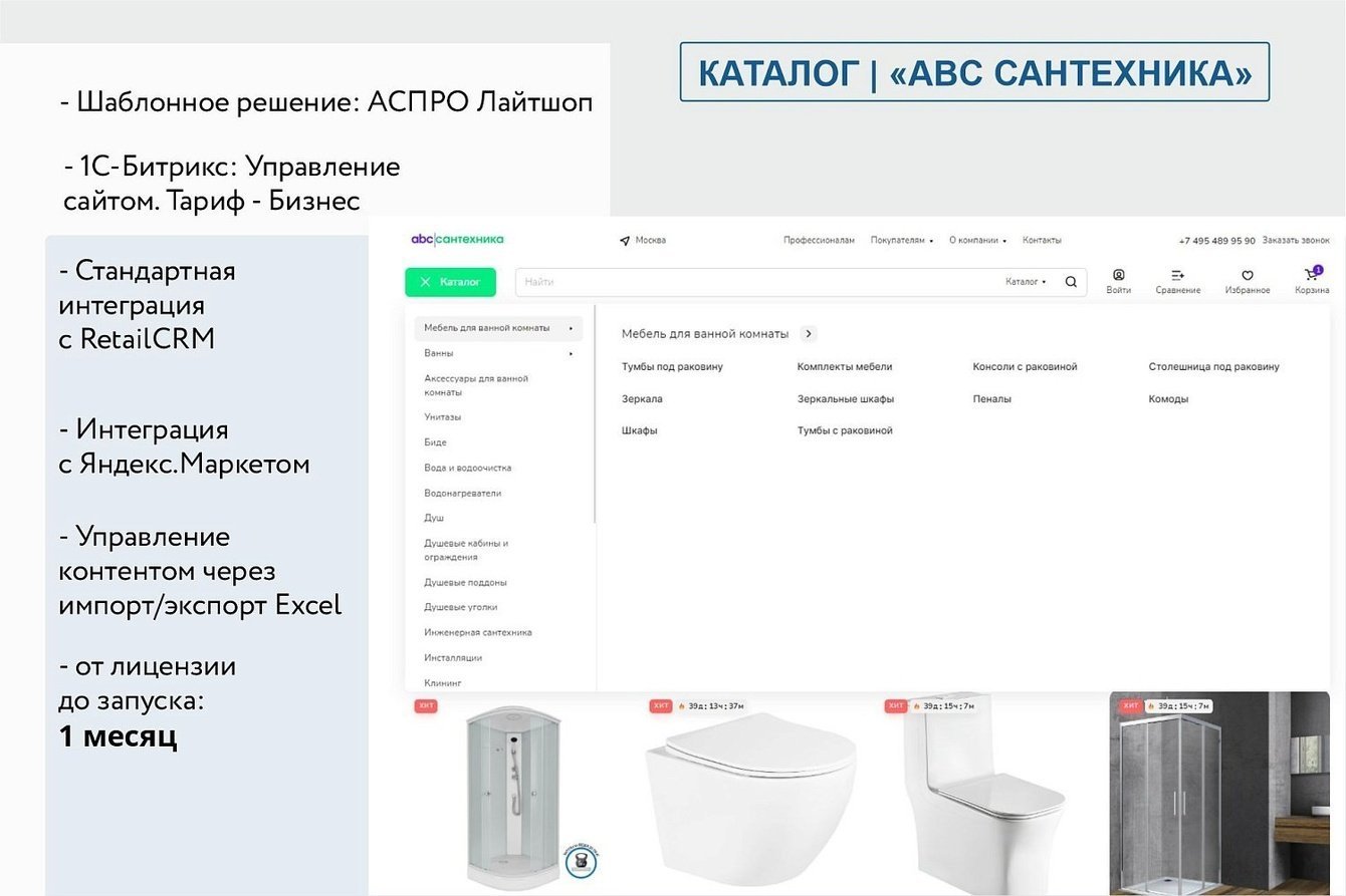 Интернет-магазин, выполненный на готовом решении "1С-Битрикс: Управление сайтом. Бизнес" + "Аспро: Лайтшоп", соответствуем всем заявленным требованиям клиента. Созданный интернет-магазин обладает всеми необходимыми функциями для удобного и безопасного совершения покупок. Проект был завершен в установленные сроки и успешно развивает с нашей профессиональной поддержкой.