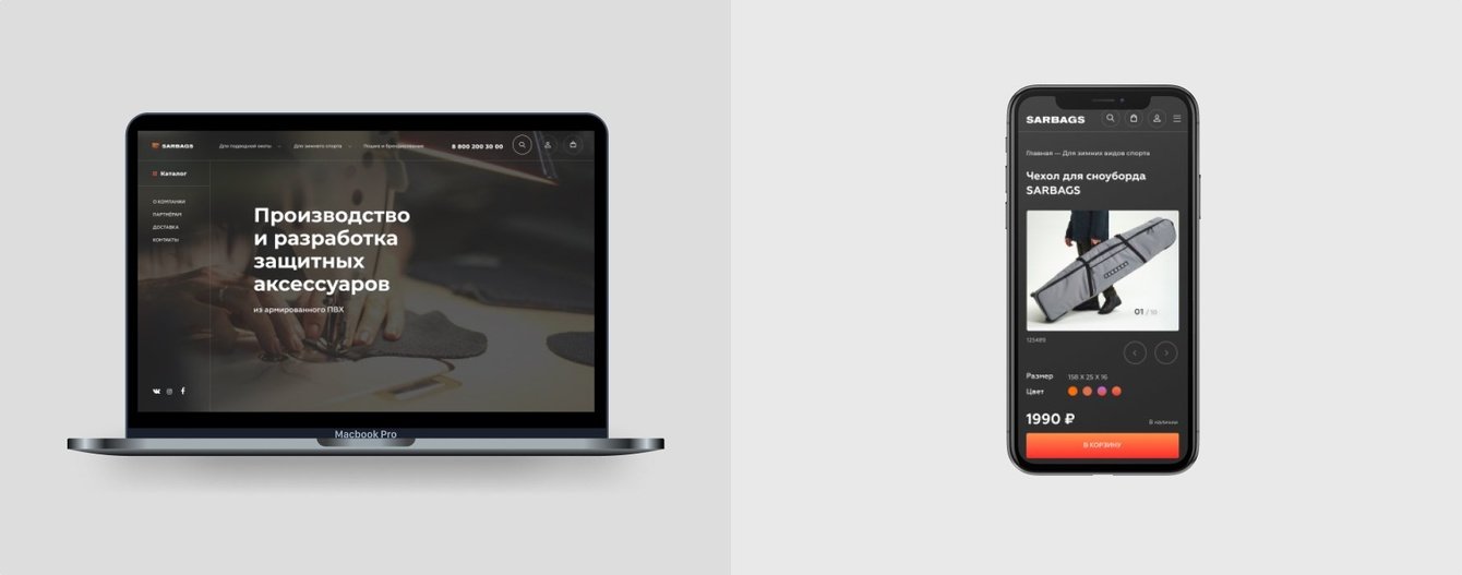 Sarbags 10 лет производят и брендируют снаряжение для спорта и отдыха. Они делают рюкзаки, гермомешки, сумки и аксессуары. Перед тем, как запустить товар в массовое производство его тестируют в дикой природе. Если товар прошел проверку — запускают в массовое производство, нашли недочеты — отправляют на доработку и повторное испытание. По заказу делают индивидуальный пошив. Sarbags расширила свой ассортимент товарами для спорта. Чтобы соответствовать новому направлению компании потребовалось обновление фирменного стиля и логотипа. Для масштабирования продаж — сайт с функционалом интернет-магазина. Проект должен был отражать характер компании и ее подход к клиентам и продажам.