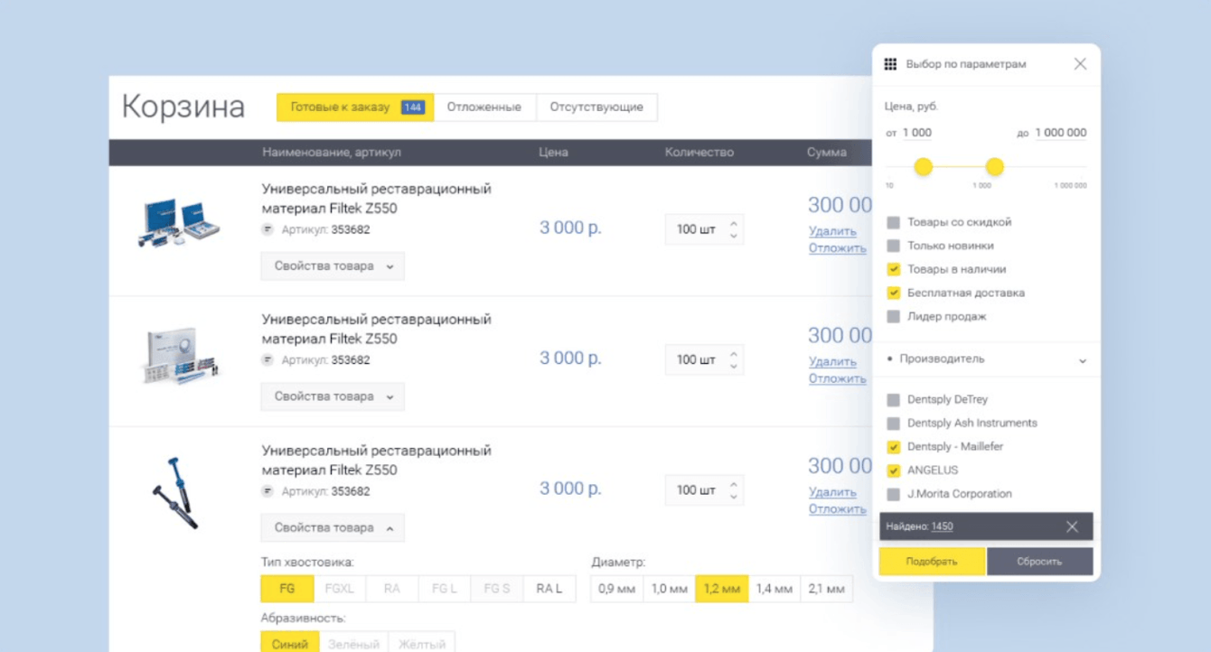 1. Для удобства поиска товаров и быстрого формирования заказа в огромном каталоге, который к тому же постоянно обновляется, на сайте реализован умный поиск. Пользователь может найти товар или группу товаров за секунды. Даже если известна только часть названия, умный поиск подскажет и выведет релевантные варианты.