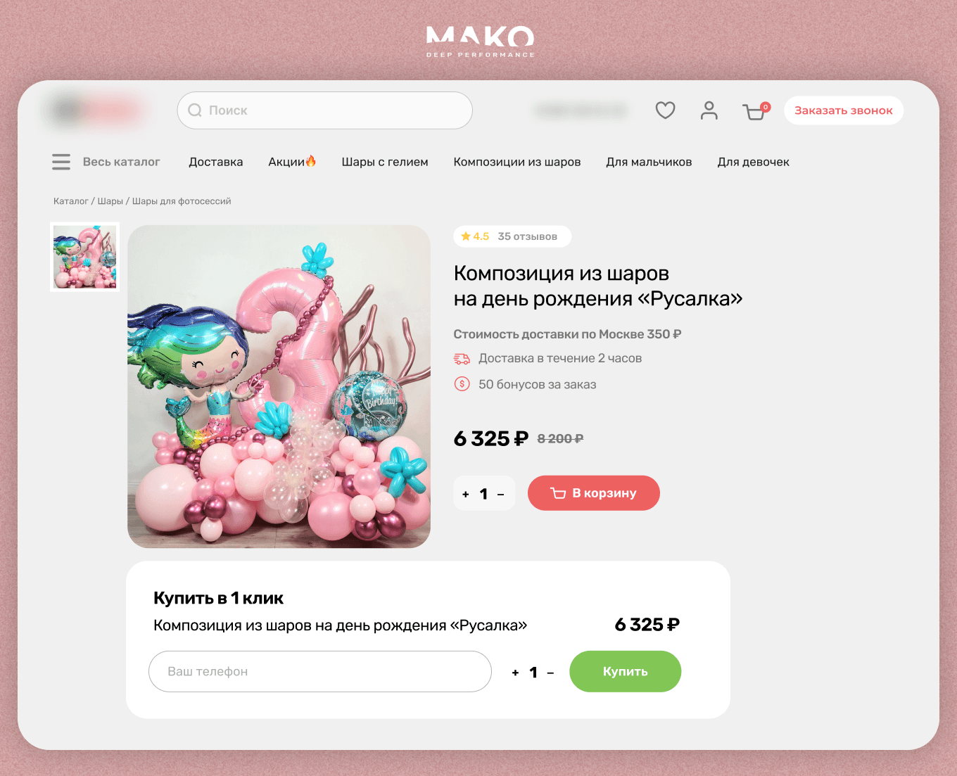 Но в мае начались новые проблемы — отключения мобильного интернета в Москве, да и по всей стране. Это было уже очень серьезно. В 70% случаев срочный заказ шариков делали с мобильных. Поэтому, в периоды блокировок резко падал спрос на онлайн покупки. Пользователи не могли нас найти и покупали воздушные шарики в офлайн-магазинах.