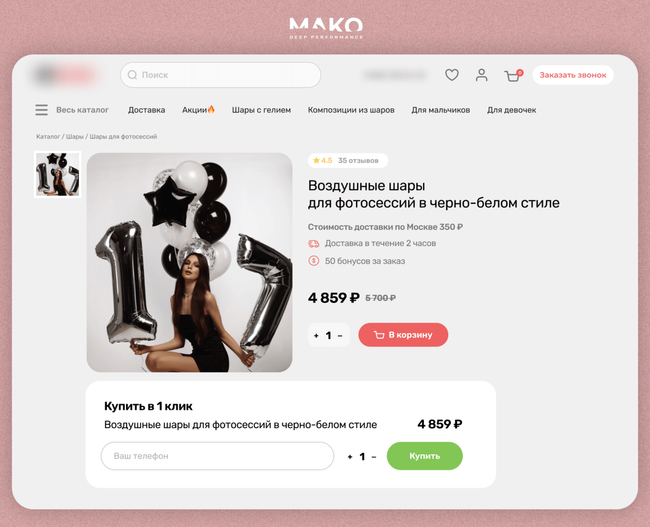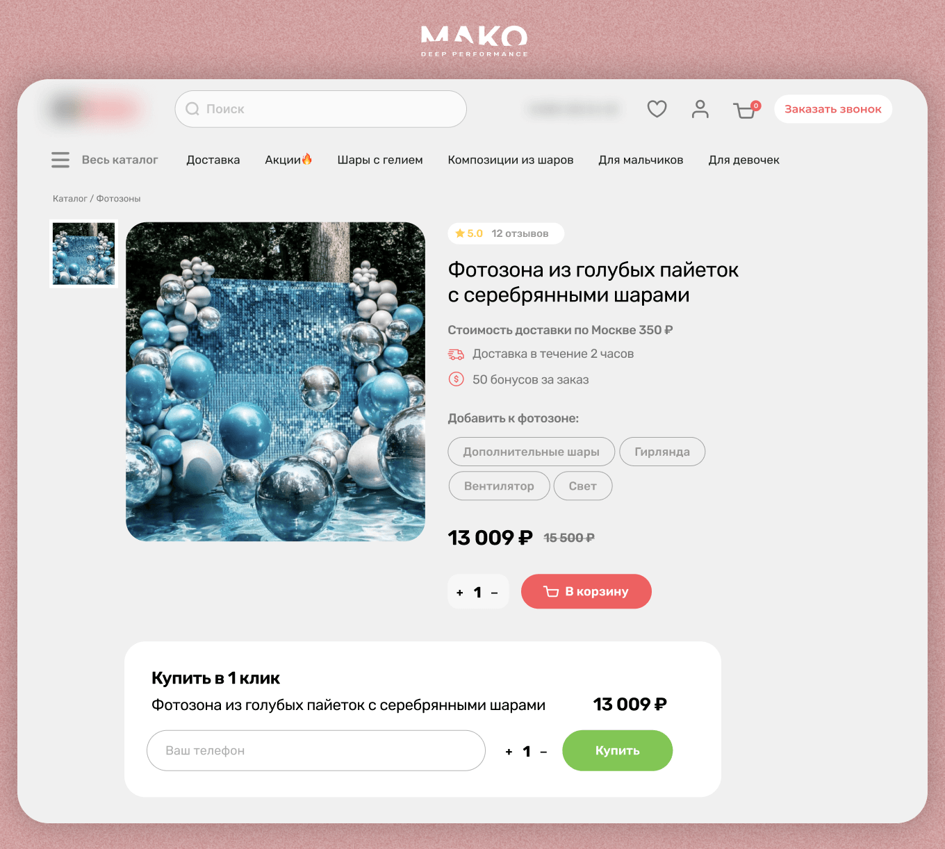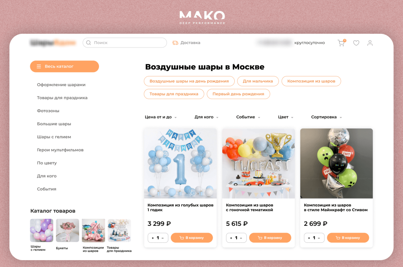 Самые большие сложности в продвижении вызывало резкое колебание спроса на группы товаров по сезонам. Их в интернет-магазине было три: шарики, цветы и фотозоны. Сейчас расскажем про эти товары подробнее.