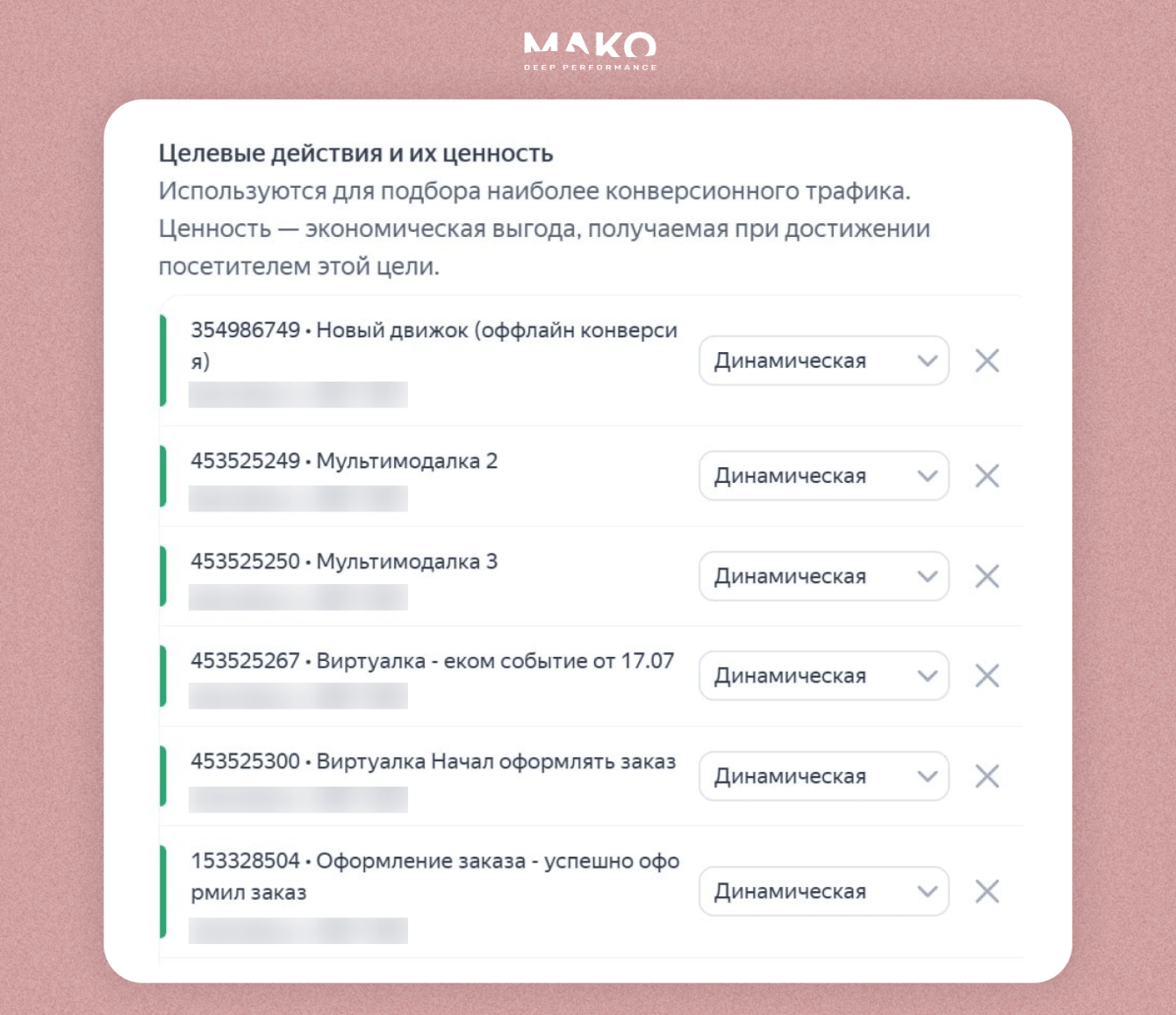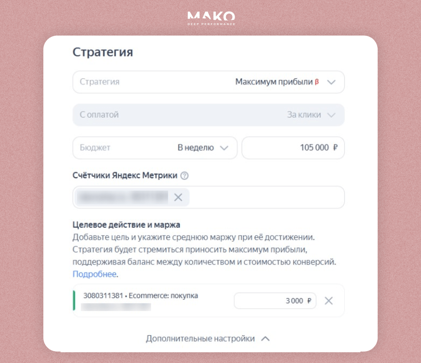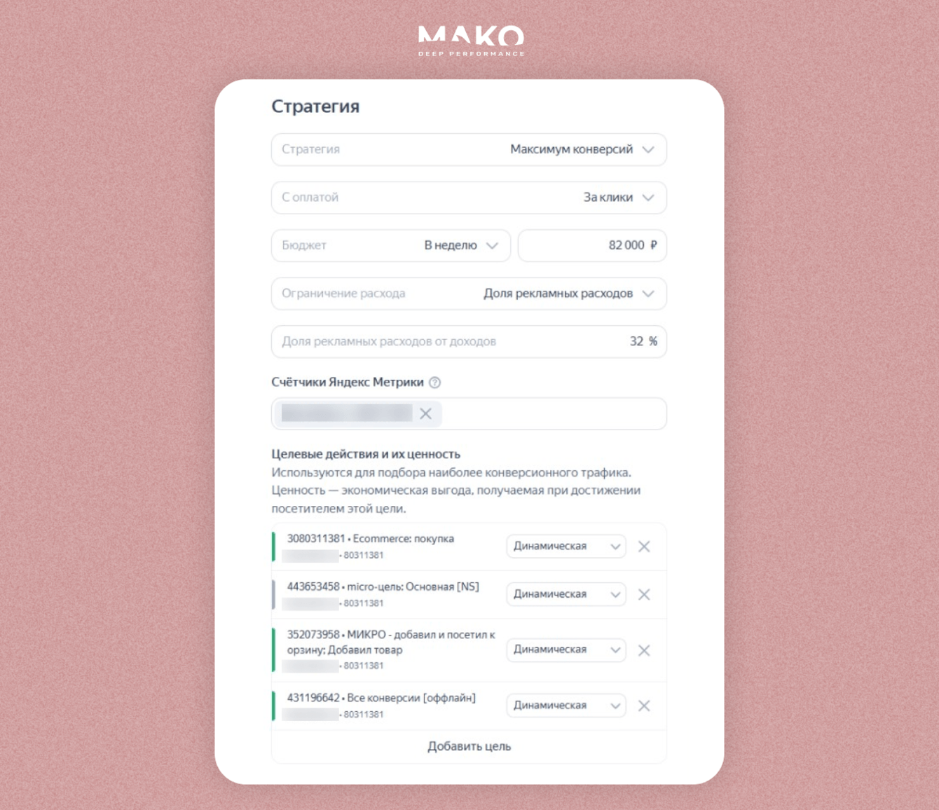 Обучили модель на наших конверсиях (заявках на сайте, звонках). Установили стоимость на них (например) до 3000 рублей. Настроили стратегию по ДРР на получение нескольких микроконверсий по 800 р., с прицелом на то, что одна из них превратиться в макроконверсию..