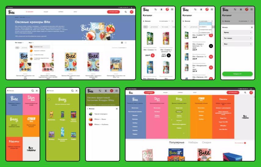На предшествующем сайте было много “лишней” информации, которая отвлекала аудиторию от покупок. Поэтому мы перенесли все корпоративные разделы в футер сайта, сделав акцент на выборе товаров и оформлении заказа. Упростили процессы выбора и оформления товара.