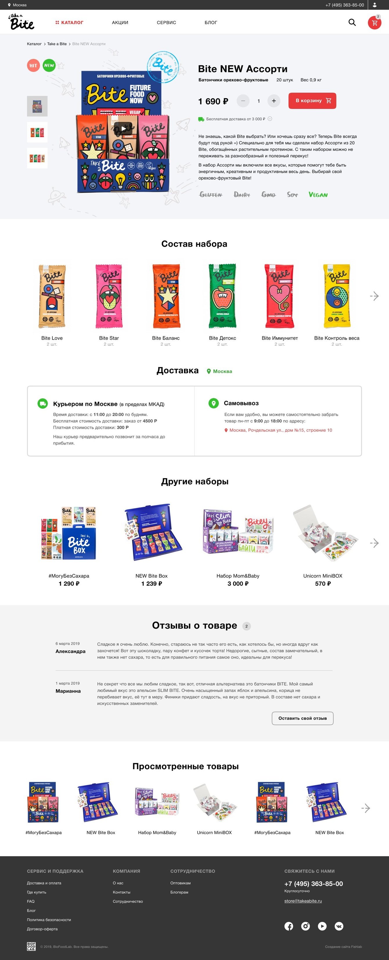 - карточка набора — наборы содержат разные категории товаров (например, печенье, конфеты, крекеры, батончики).