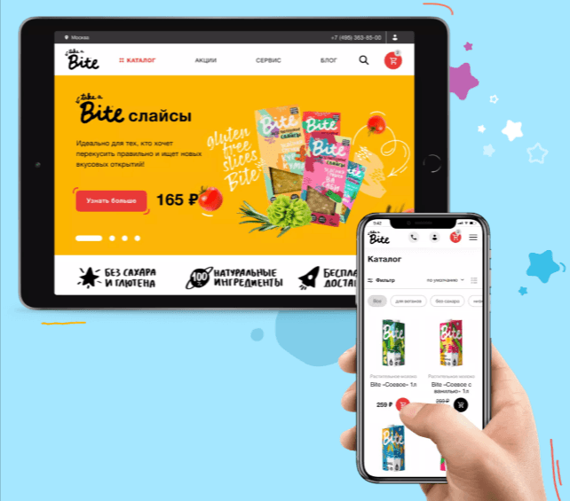 Вместо разработки специальной мобильной версии сайта мы создали адаптивную верстку под смартфоны и планшеты. Поскольку сайт создан с учетом принципов UX и UI, необходимости разрабатывать дополнительную версию не было. На выходе получился интуитивно понятный интерфейс.