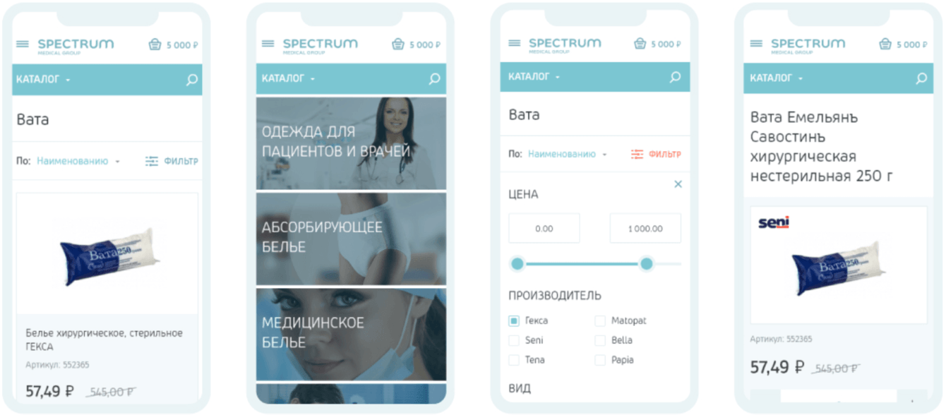 Заказчик хотел, чтобы сайт отличался от существующих интернет-магазинов на схожую тематику. Важно было сбалансировать простоту и удобство процесса покупки товаров и креативное, индивидуальное исполнение. Мы создали нетипичную для медицинских сайтов структуру как главной страницы, так и страниц каталога.