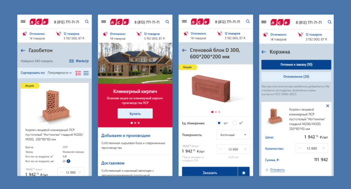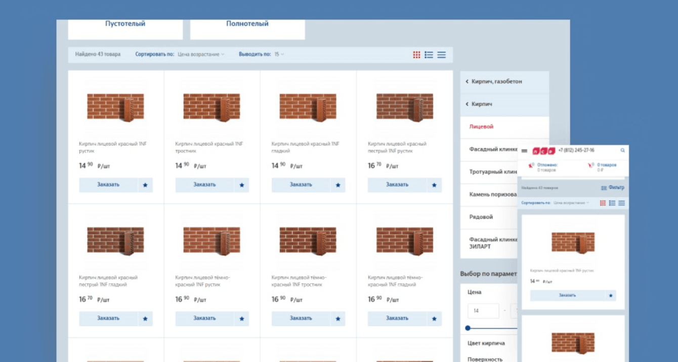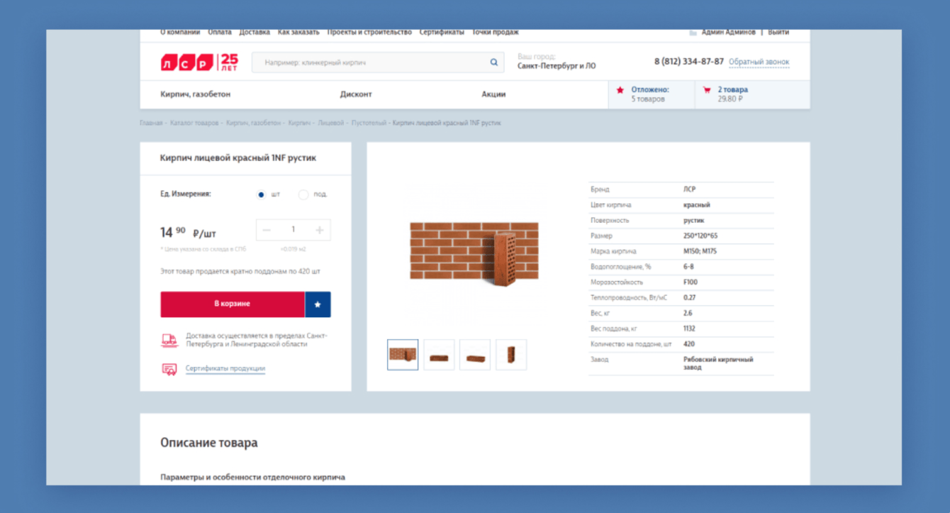 Ассортимент интернет-магазина — строительные материалы, сопутствующие товары, услуги по доставке и выгрузке продукции. Компании требовалось организовать розничную онлайн-торговлю строительными материалами в сегменте B2C.