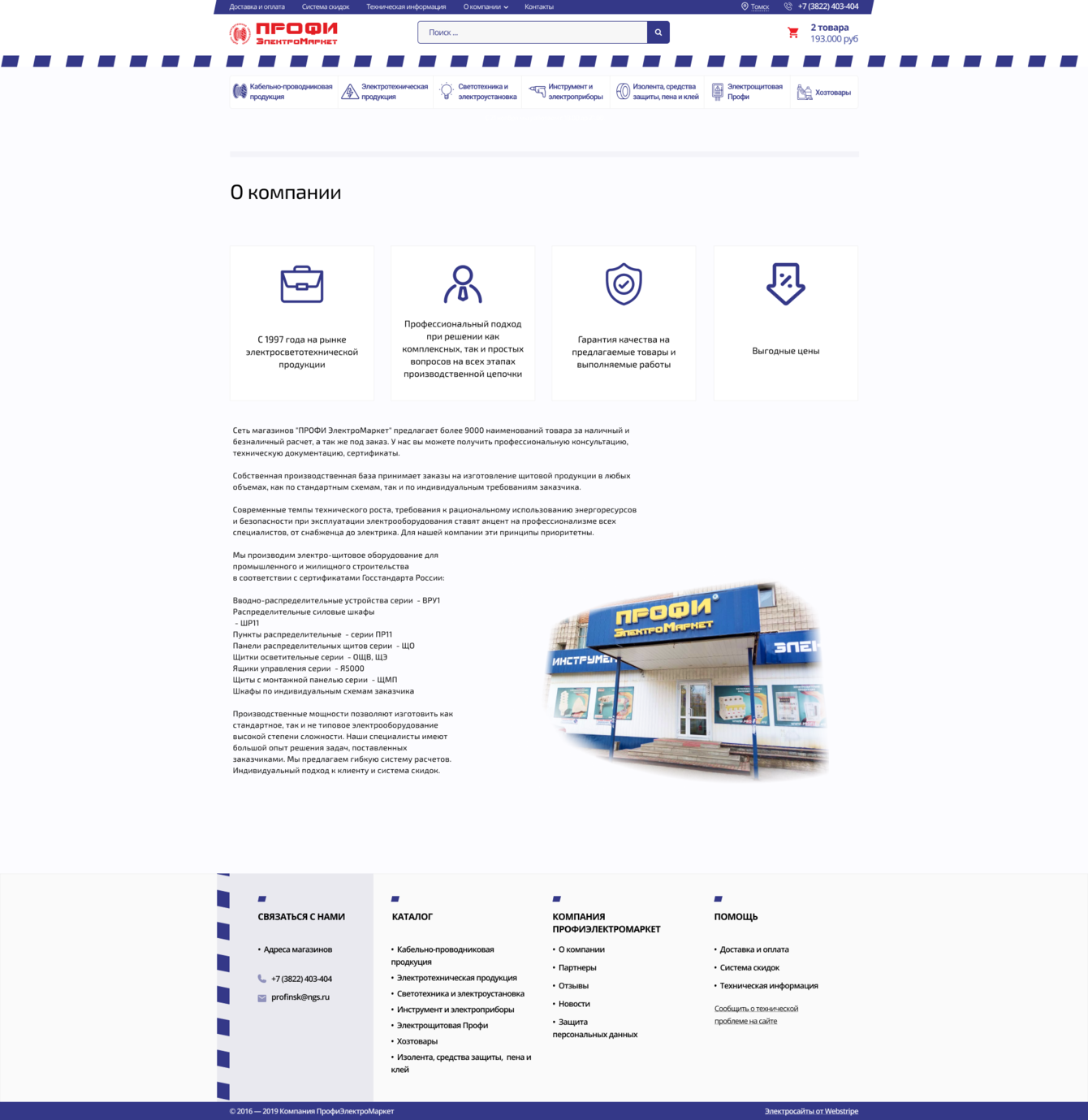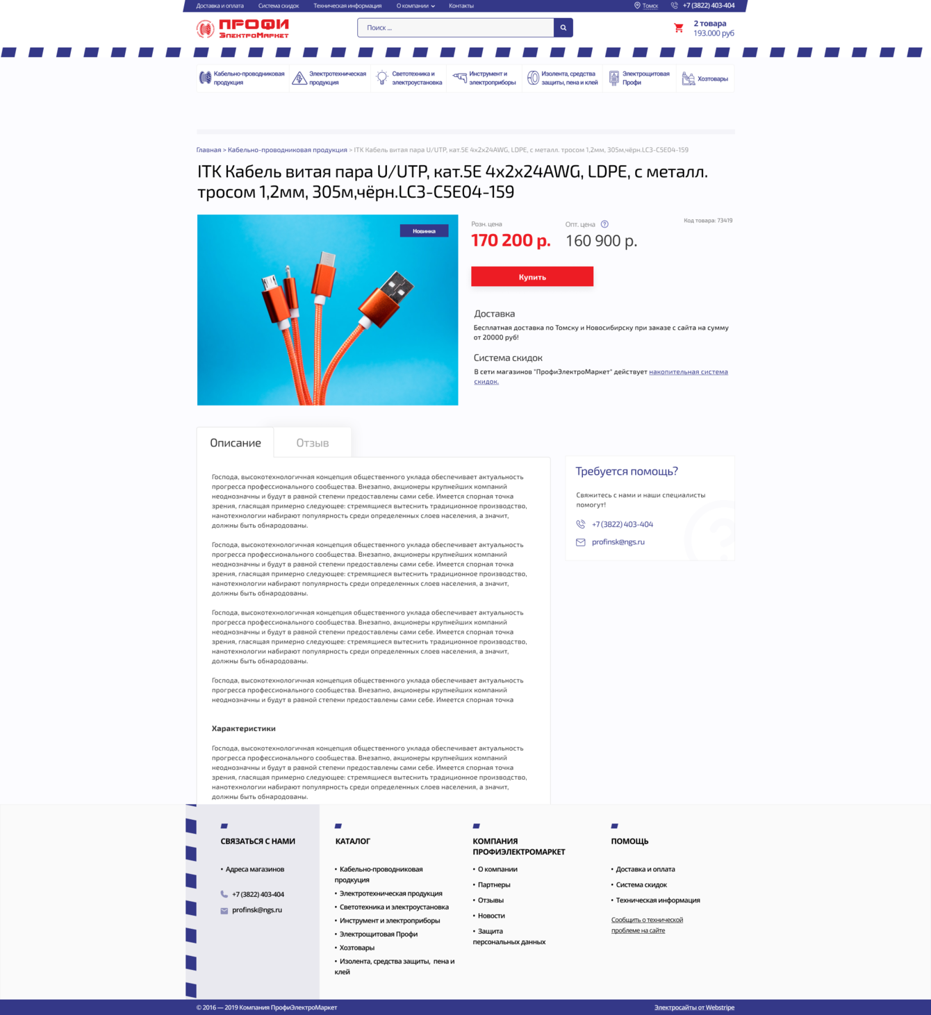 Создать современный интернет-магазин для компании Pro-Electro, специализирующейся на продаже электротехнического оборудования и комплектующих, который: