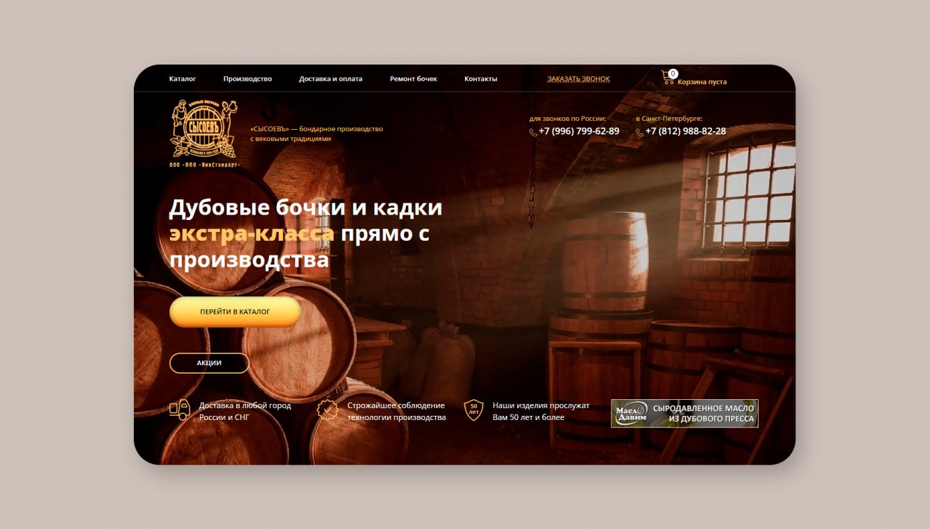 Создание интернет-магазина бондарной продукции вместо устаревшего сайта-визитки, который трудно обновлять.