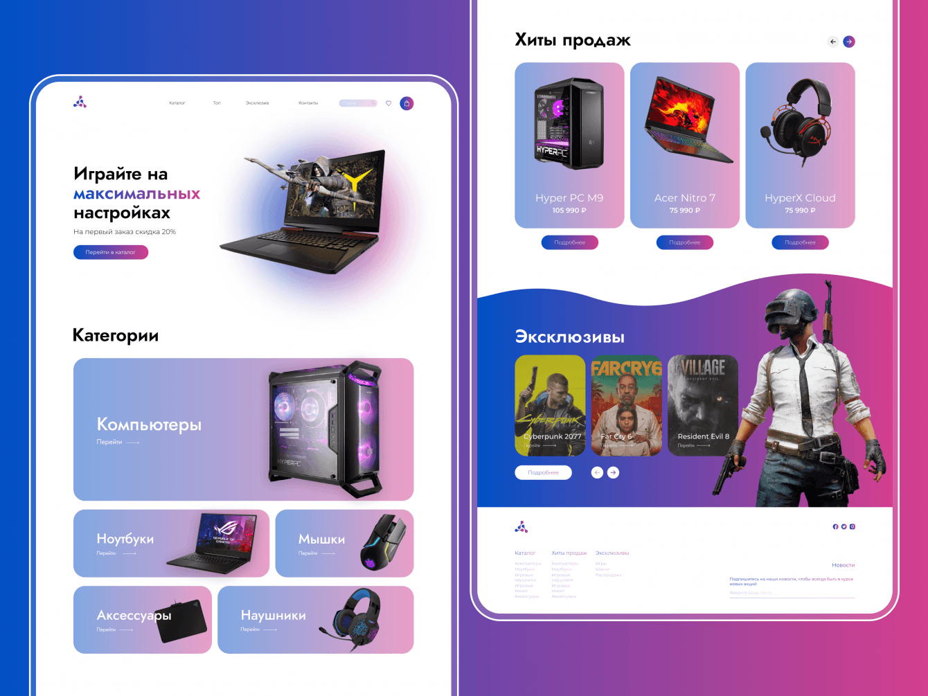 Главная задача состояла в том, чтобы создать удобный и современный дизайн для магазина электроники.