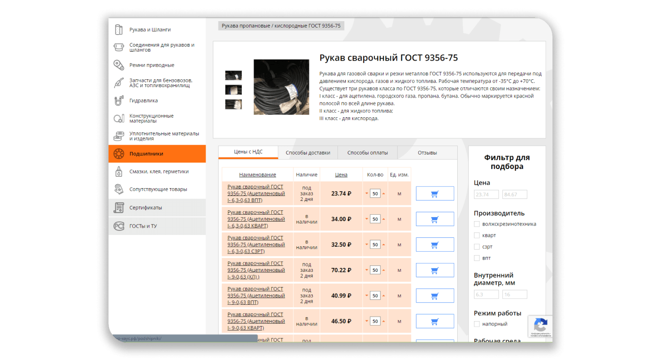 3. Применили на сайте систему тегирования, которая позволяет создавать страницы с красивыми URL-адресами и необходимой выборкой товаров, например «Недорогие рукава высокого давления». Отбор идет по значениям свойств.