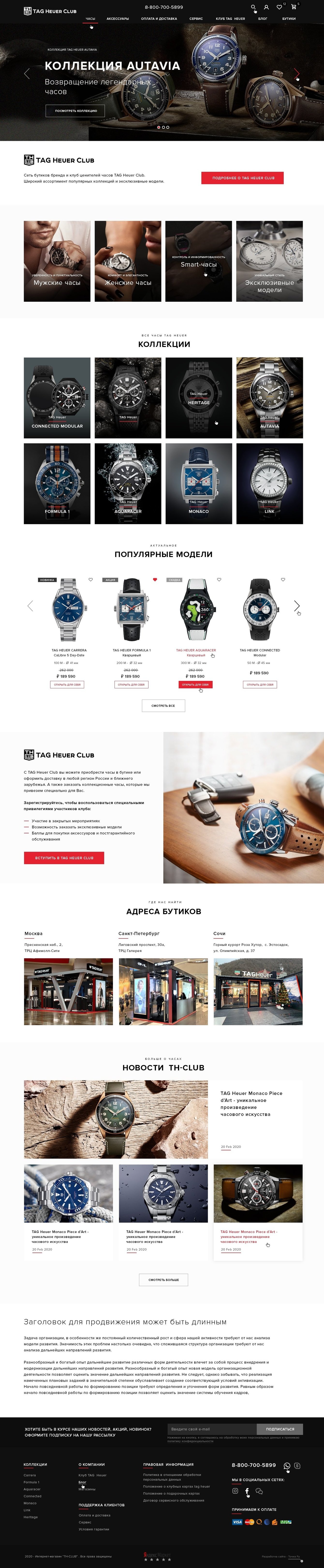 Разработать интернет-магазин для продажи коллекций часов нескольких швейцарских брендов.