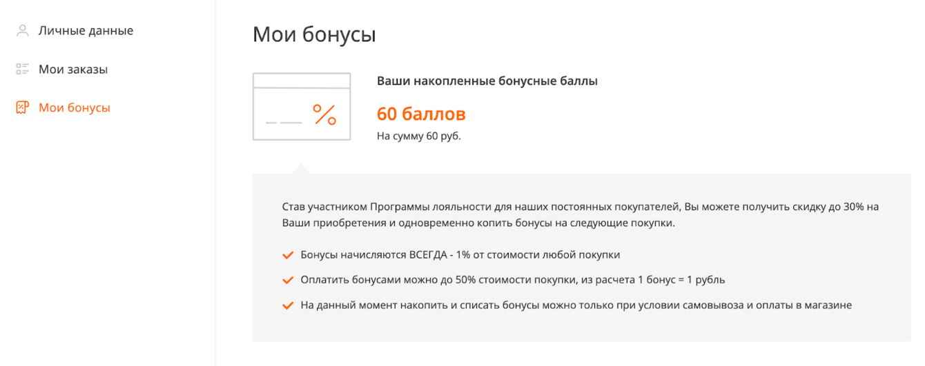 В разделе "Бонусы" личного кабинета пользователи могут ознакомиться с деталями Программы лояльности и проверить количество накопленных бонусных баллов, повышая их вовлеченность и удовлетворенность от использования нашего сервиса.