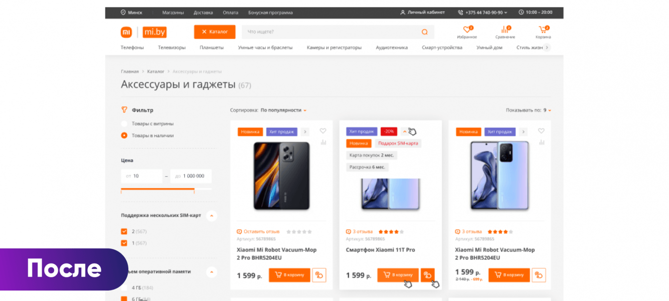 Эти усовершенствования делают процесс выбора и покупки на сайте более плавным и понятным.