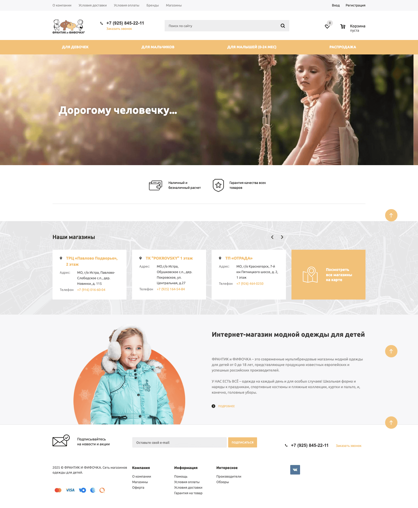 Интернет-магазин «ФРАНТИК И ФИФОЧКА», специализирующийся на продаже товаров для детей, нуждался в комплексной технической поддержке, оперативном реагировании на возникающие проблемы, а также в доработках сайта и настройке корректной интеграции с 1С.