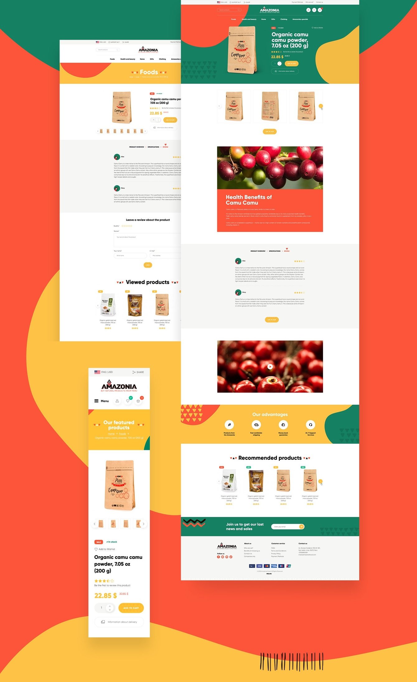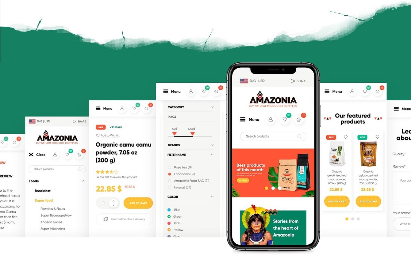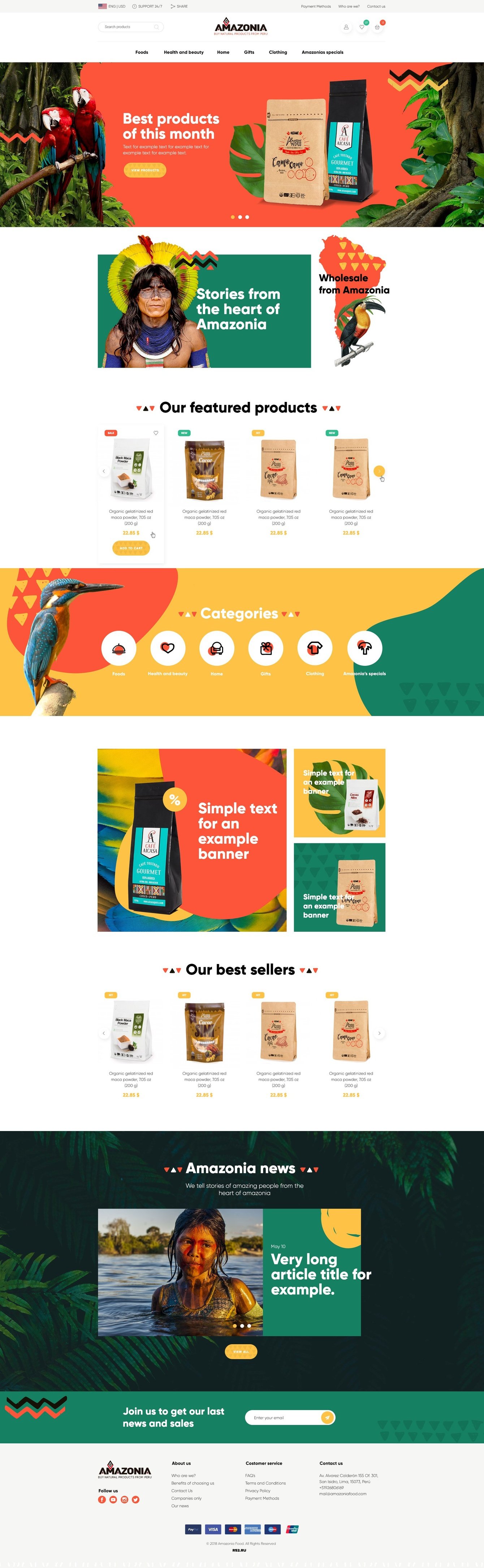 Amazonia – мультиязычный интернет-магазин эко-продуктов, произведенных в Амазонии: еда, одежда, косметика, предметы декора. Магазин продаёт и доставляет товары по всему миру.
